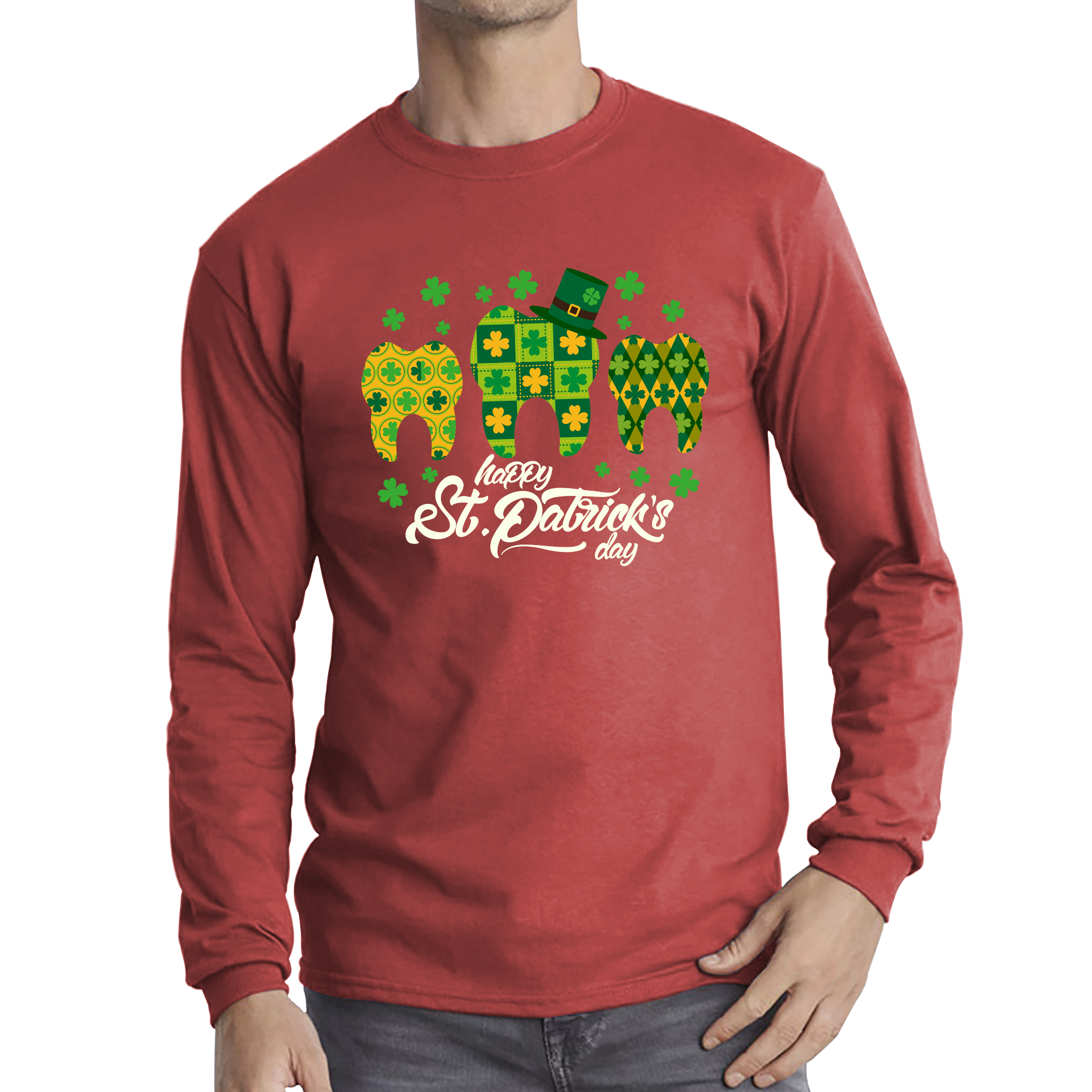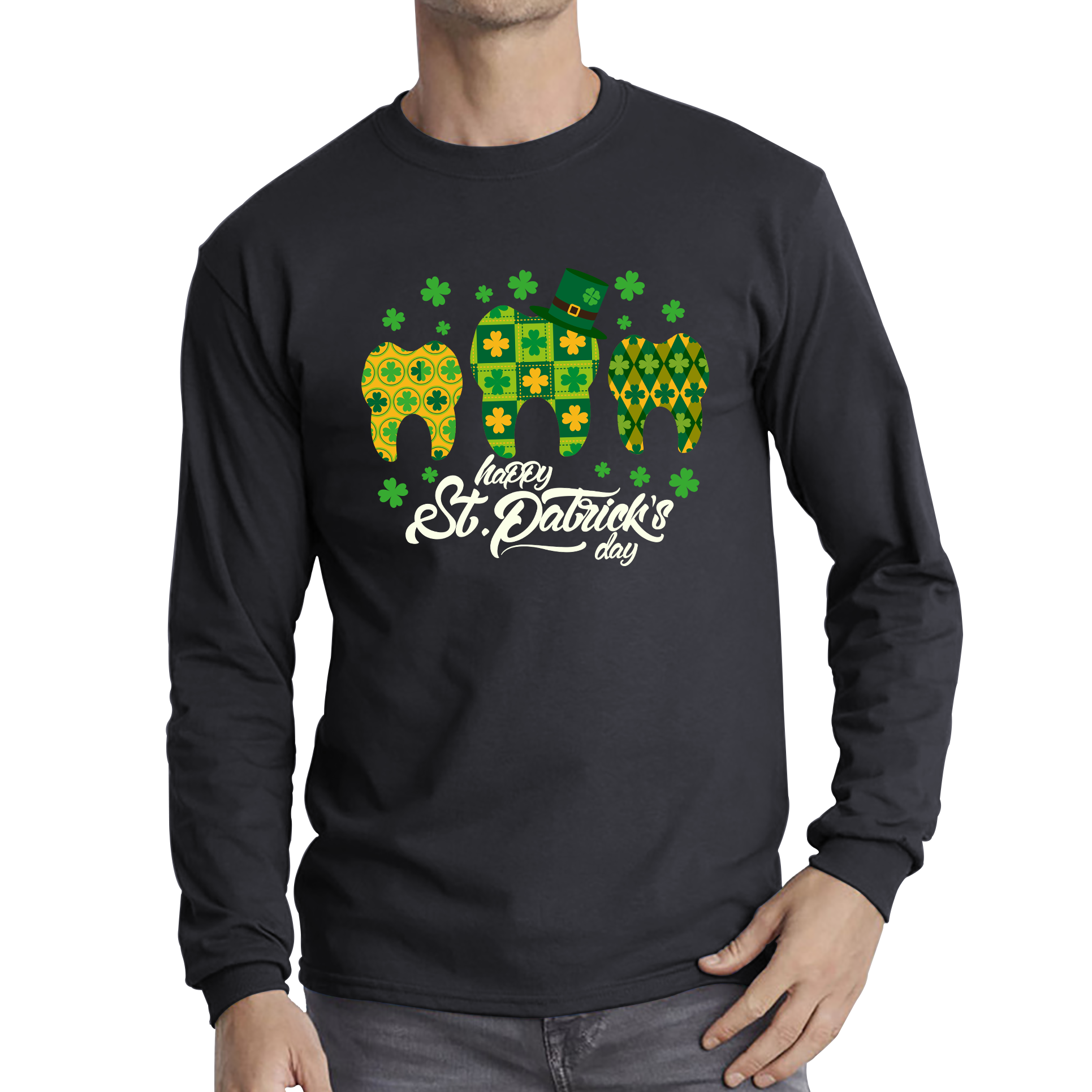 Happy St. Patrick's Day Tooth Dentist Dental Squad Tooth Shamrock Irish Day Saint Patricks Day Long Sleeve T Shirt