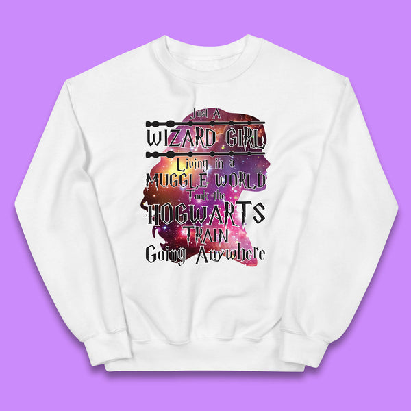 Harry Potter Just A Wizard Girl Living In A Muggle World Took The Hogwarts Train Going Anywhere Kids Jumper