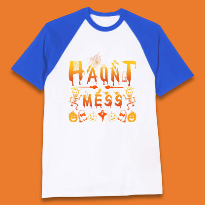Haunt Mess Halloween Ghost Horror Scary Spooky Ghost Costume Baseball T Shirt