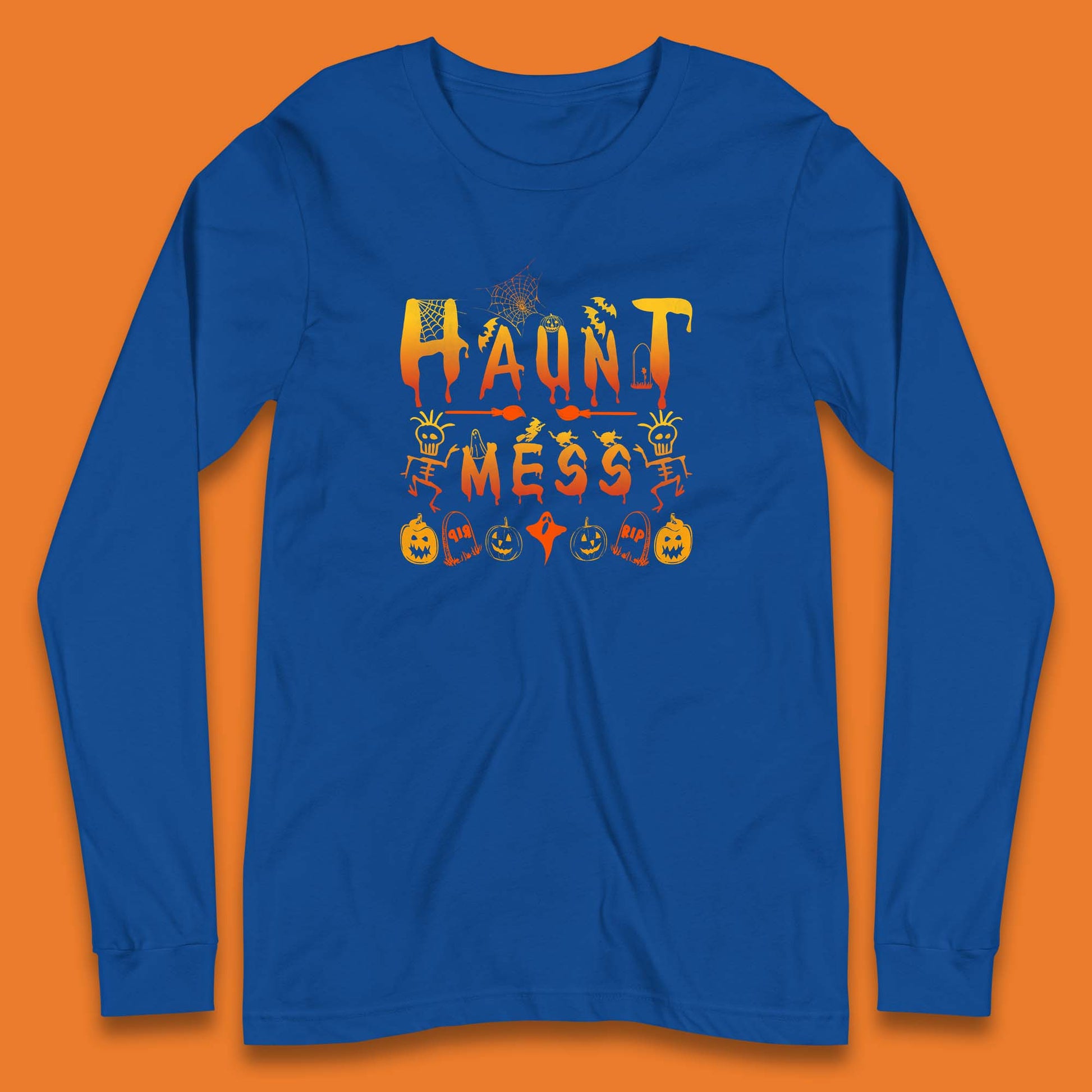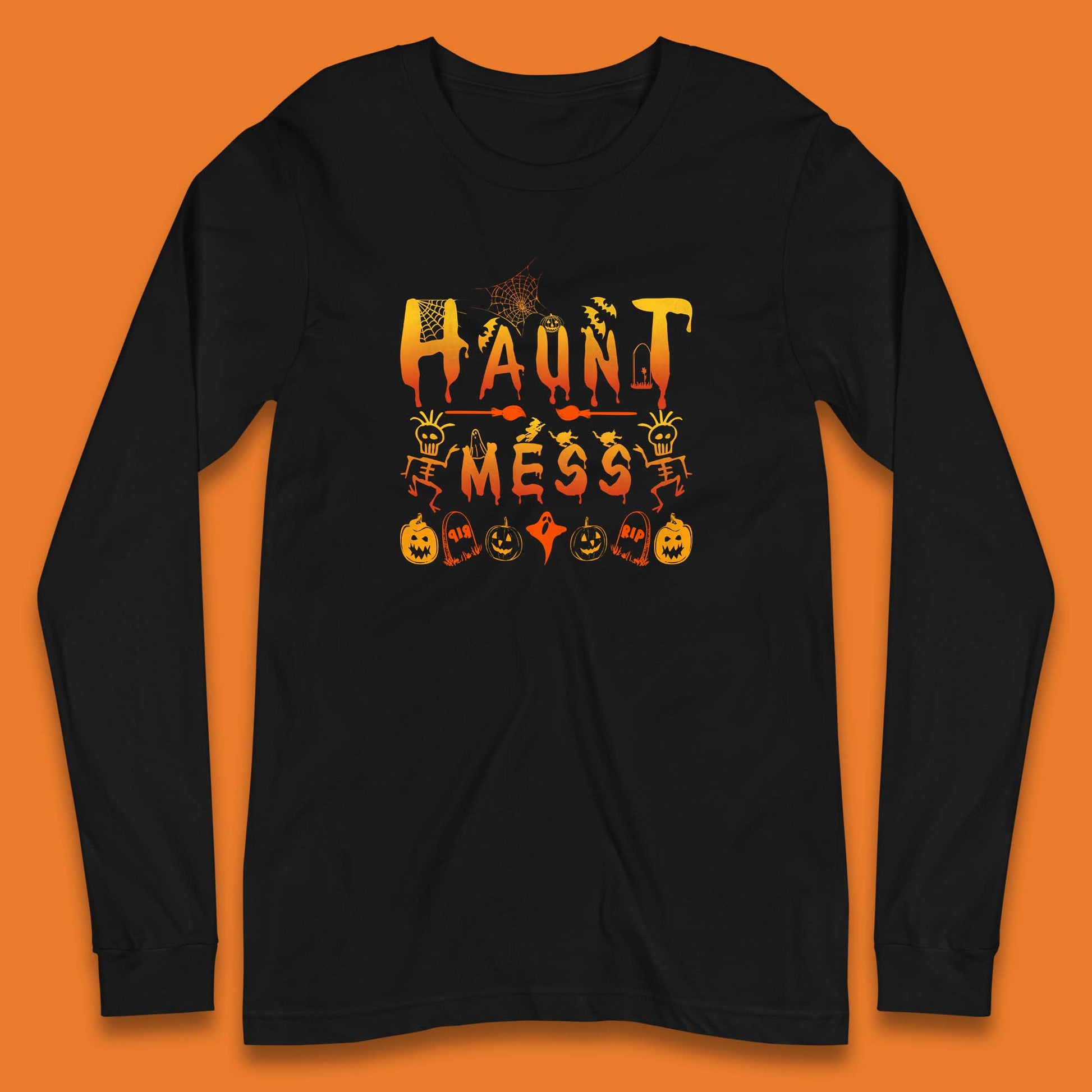 Haunt Mess Halloween Ghost Horror Scary Spooky Ghost Costume Long Sleeve T Shirt