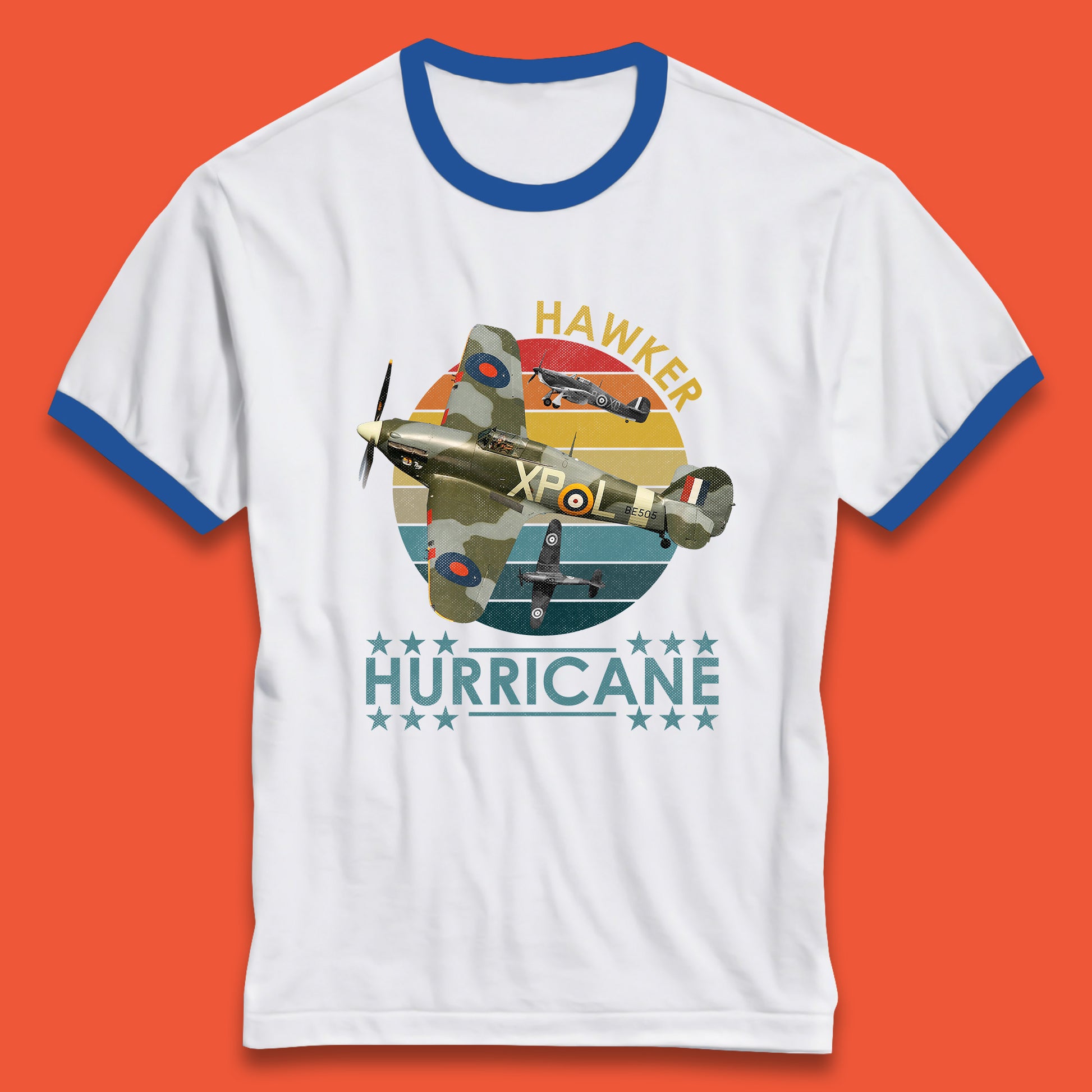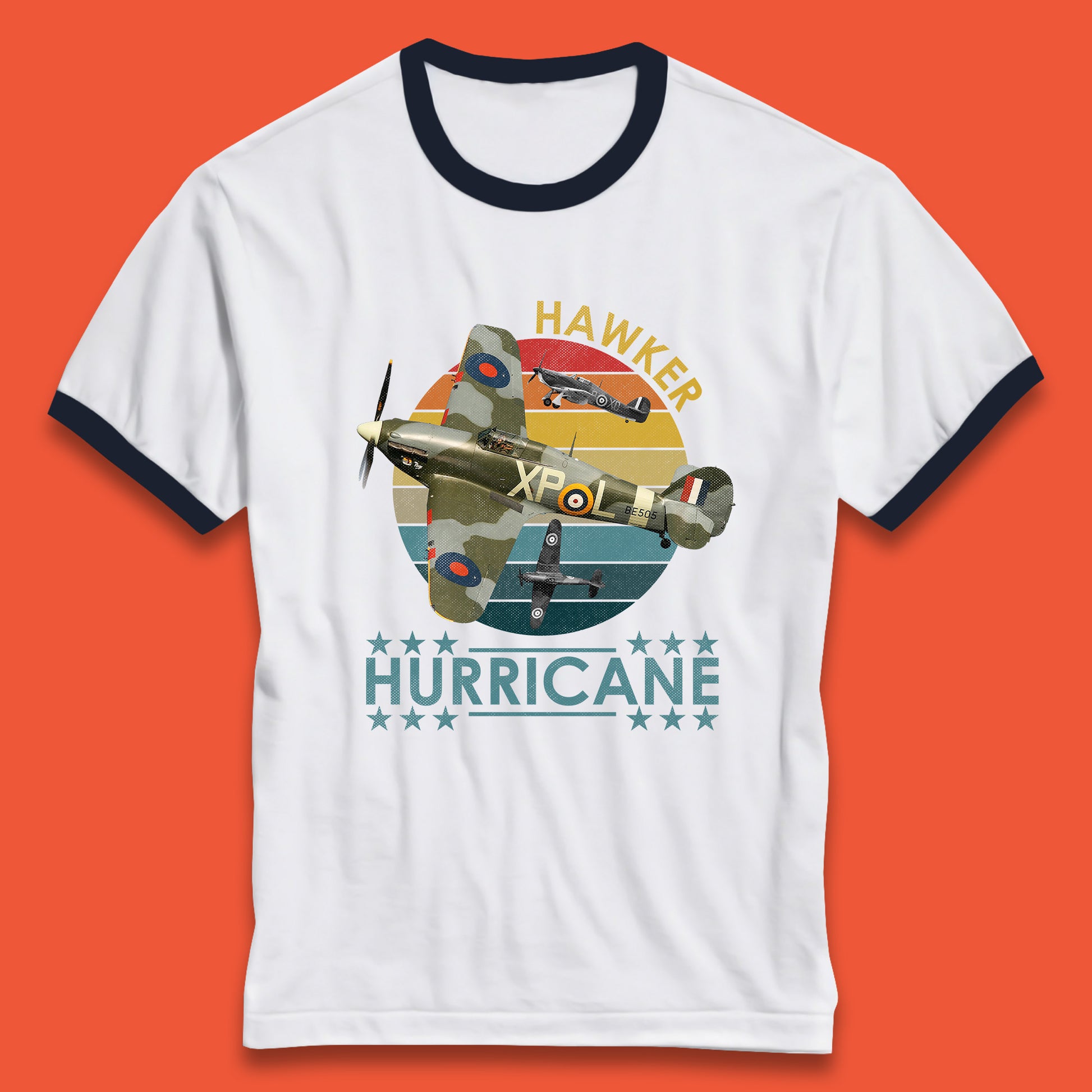 Hawker Hurricane UK Vintage WWII RAF Fighter Jet British Aircraft Royal Air Force Remembrance Day Ringer T Shirt