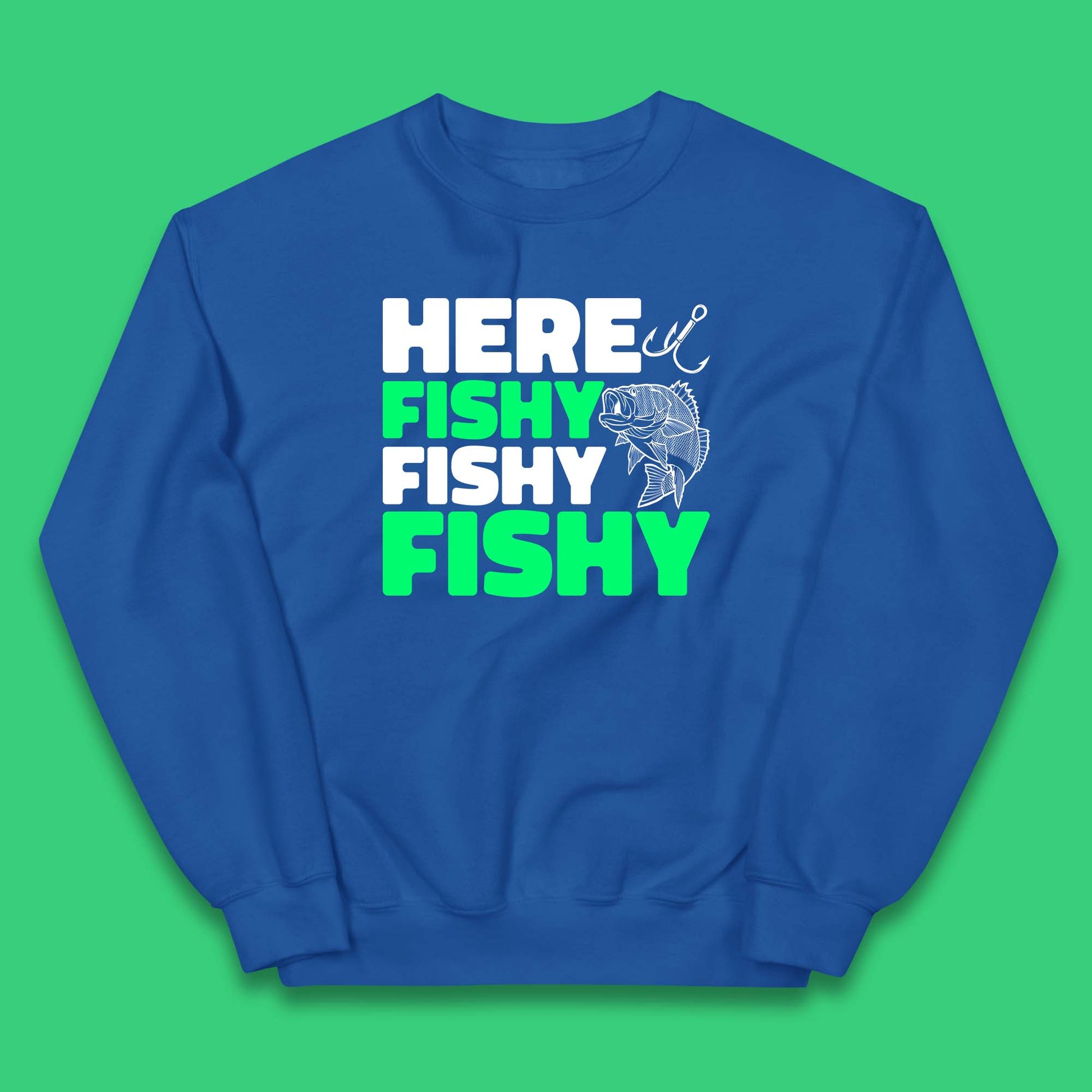 Here Fishy Fishy Fishy Funny Fishing Fish Lover Fisherman Fishing Quote Kids Jumper