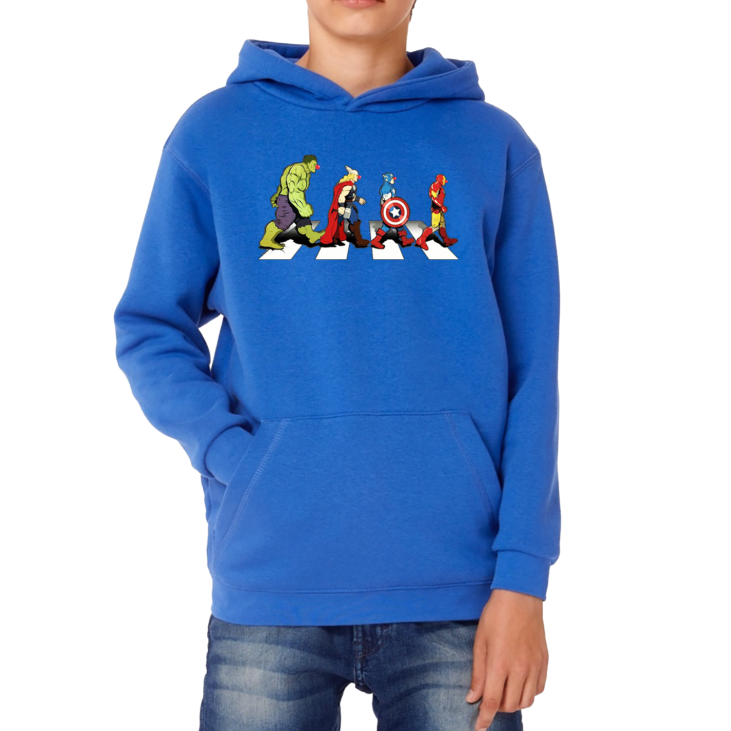 Hulk Thor Captain America Iron Man Marvel Avengers Abbey Road Red Nose Day Kids Hoodie