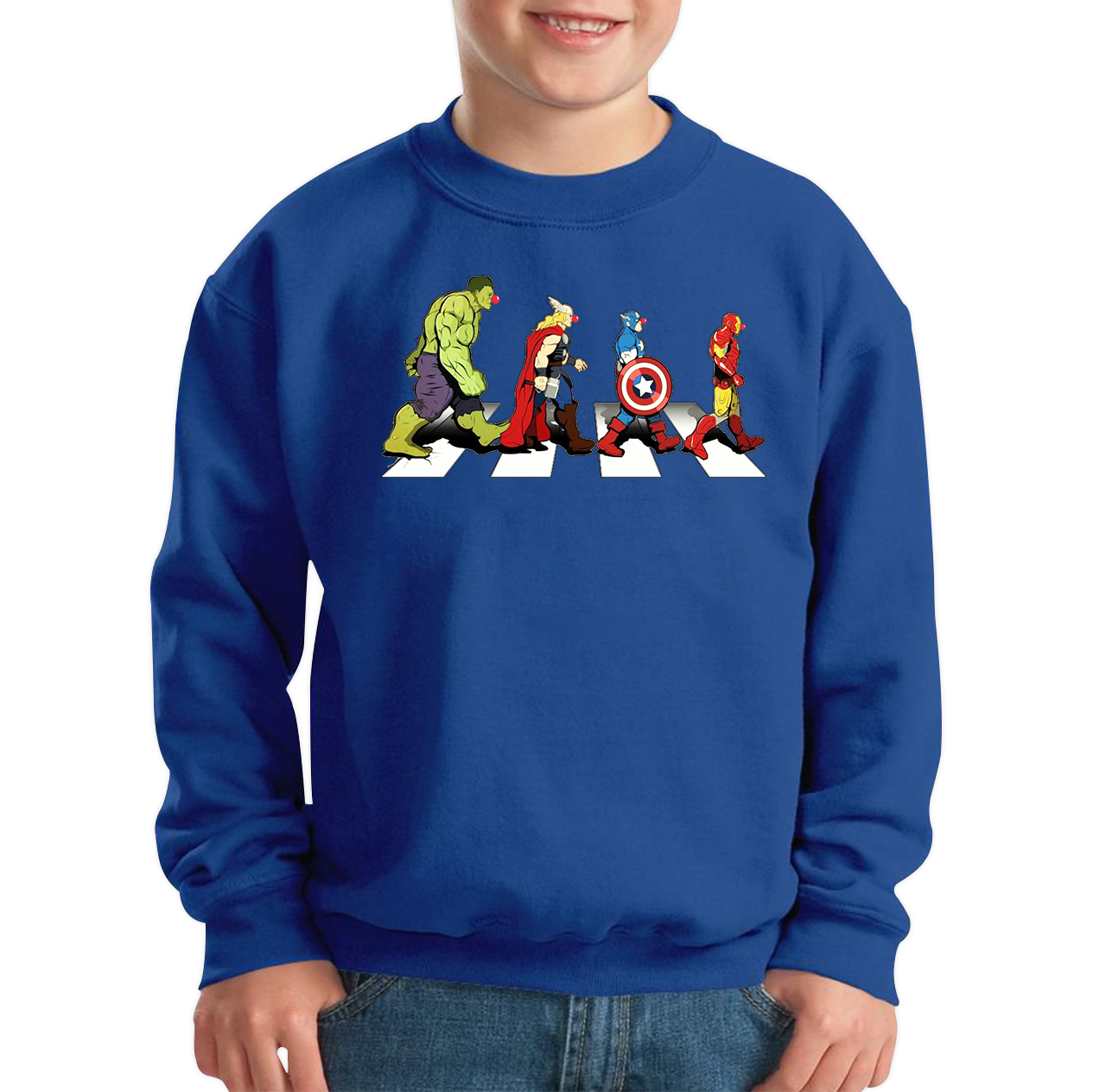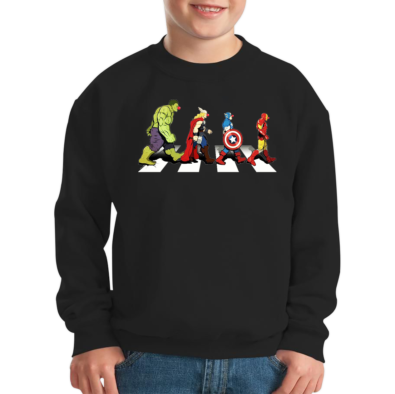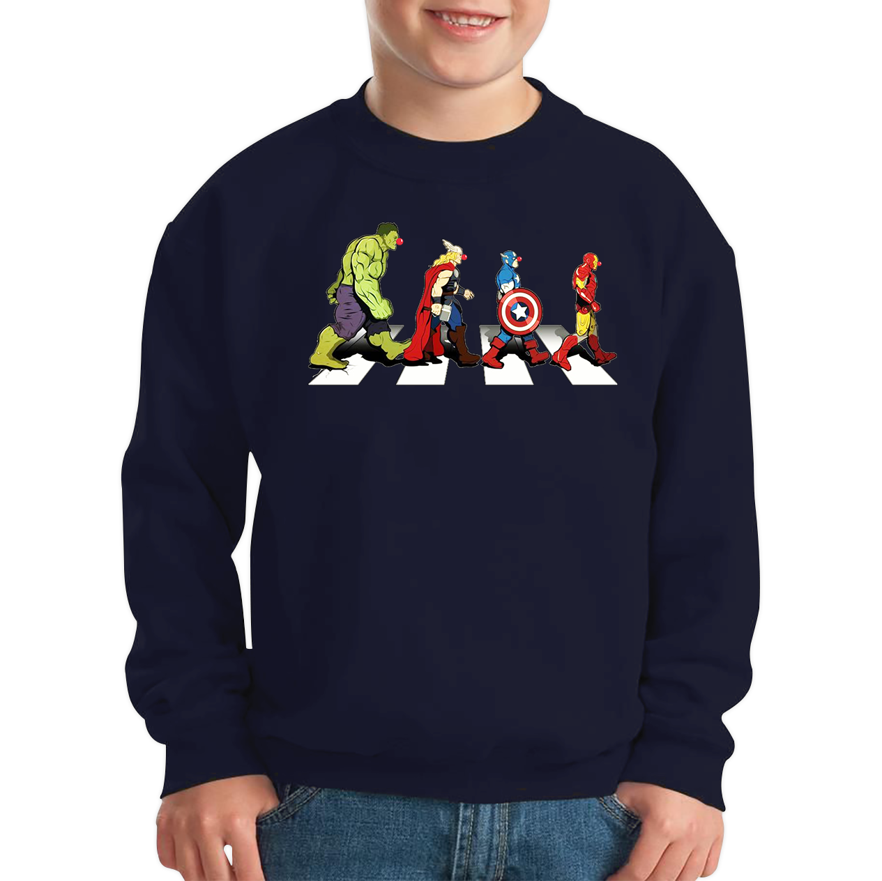Hulk Thor Captain America Iron Man Marvel Avengers Abbey Road Red Nose Day Kids Sweatshirt