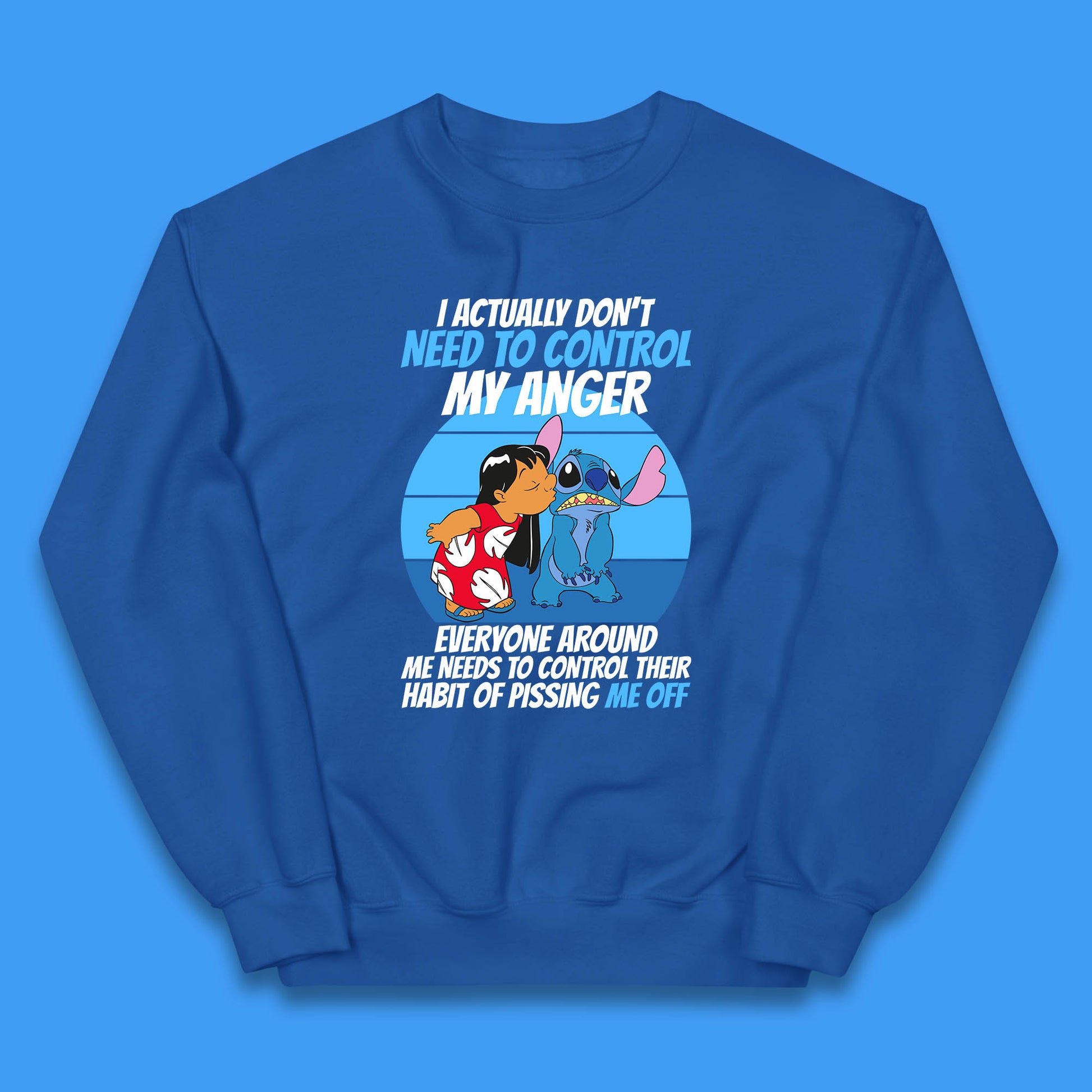 I Actually Need To Control My Anger Everyone Around My Need To Control Their Habit Of Pissing Me Off Lilo Kissing Stitch Kids Jumper