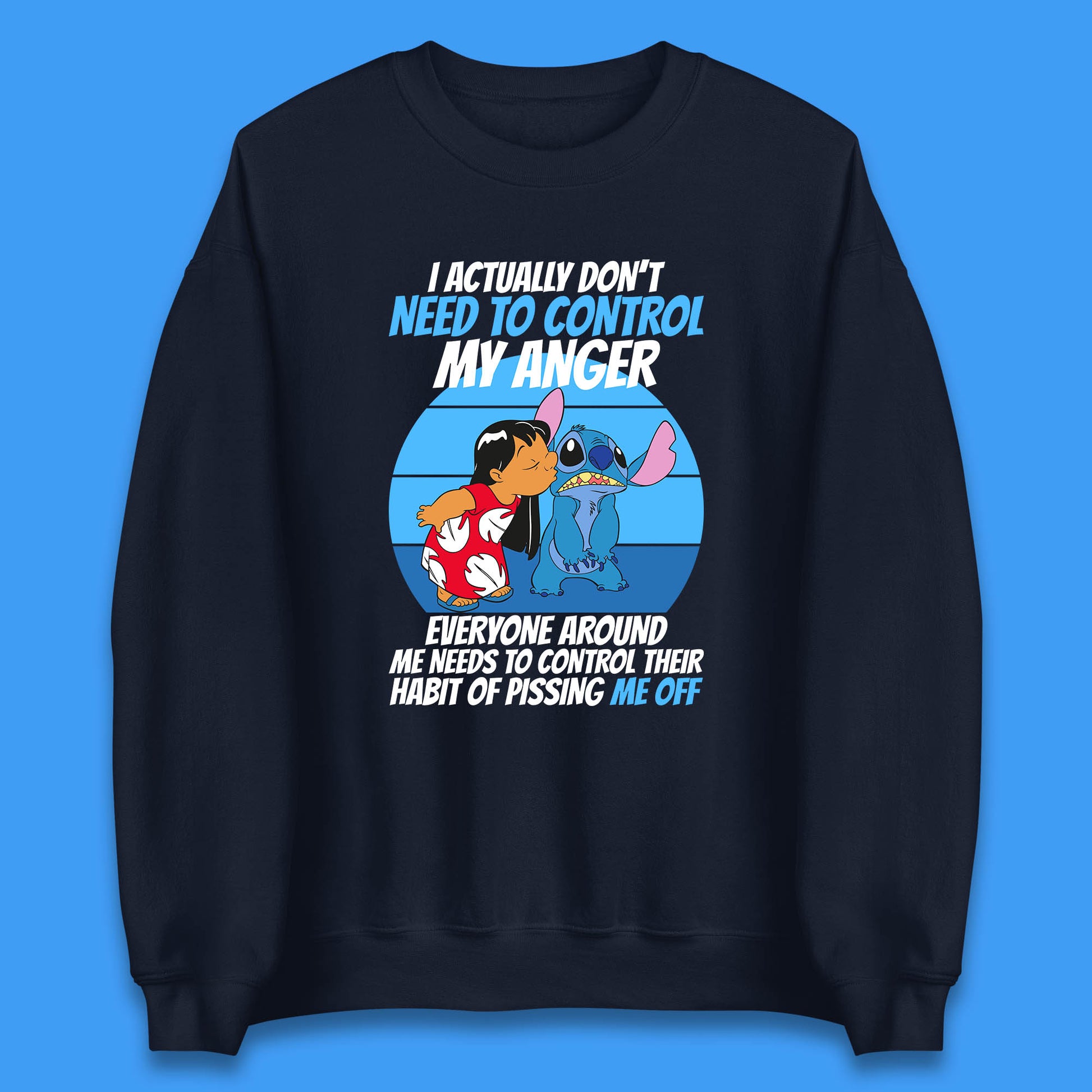I Actually Need To Control My Anger Everyone Around My Need To Control Their Habit Of Pissing Me Off Lilo Kissing Stitch Unisex Sweatshirt
