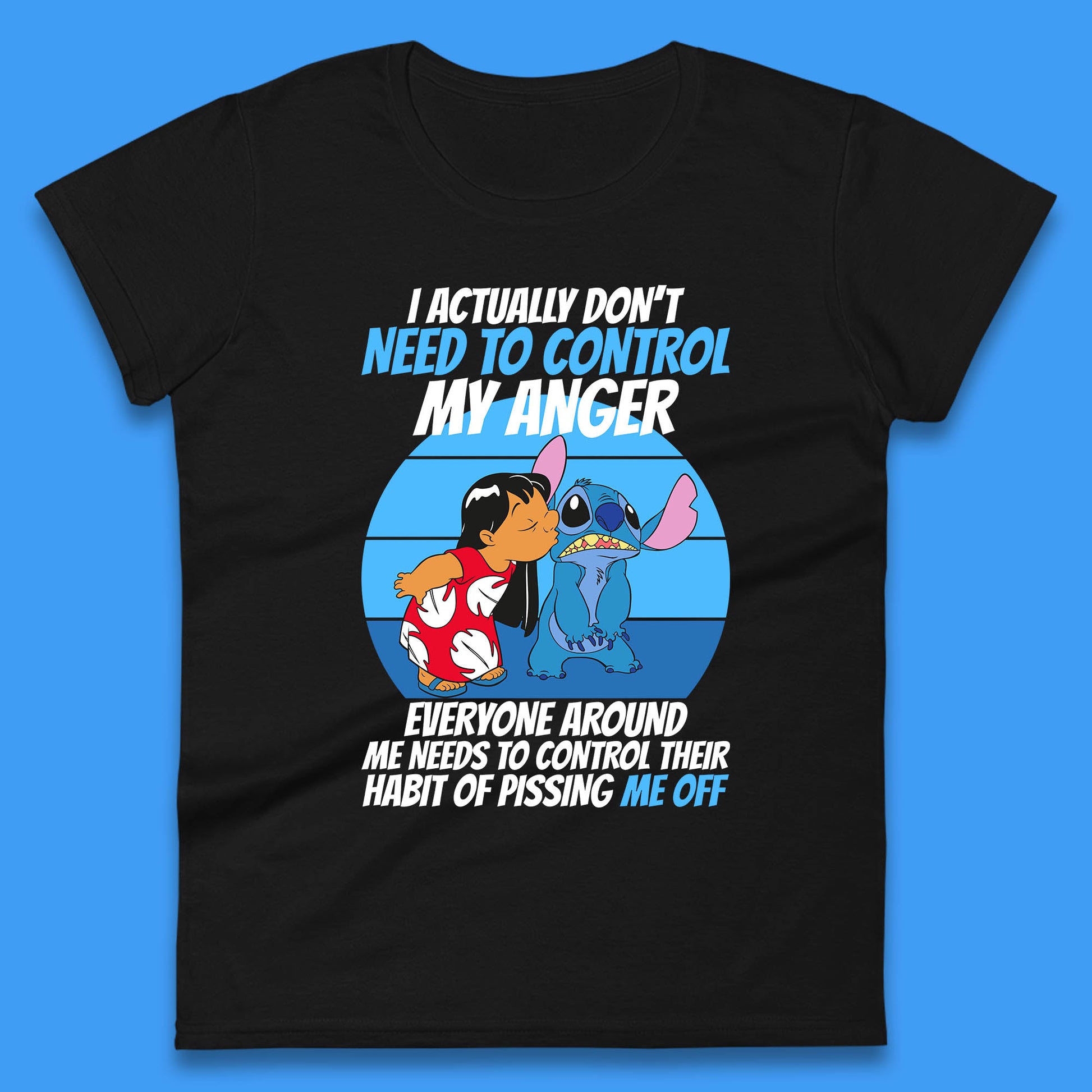 I Actually Need To Control My Anger Everyone Around My Need To Control Their Habit Of Pissing Me Off Lilo Kissing Stitch Womens Tee Top