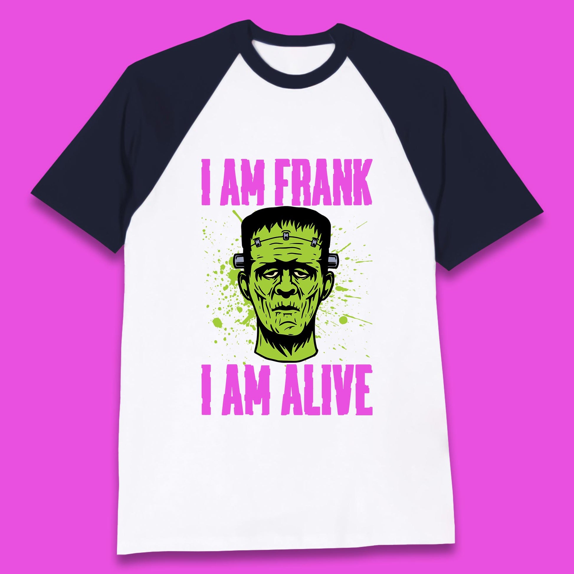 I Am Frank I Am Alive Halloween Green Frankenstein Monster Zombie Horror Face Baseball T Shirt
