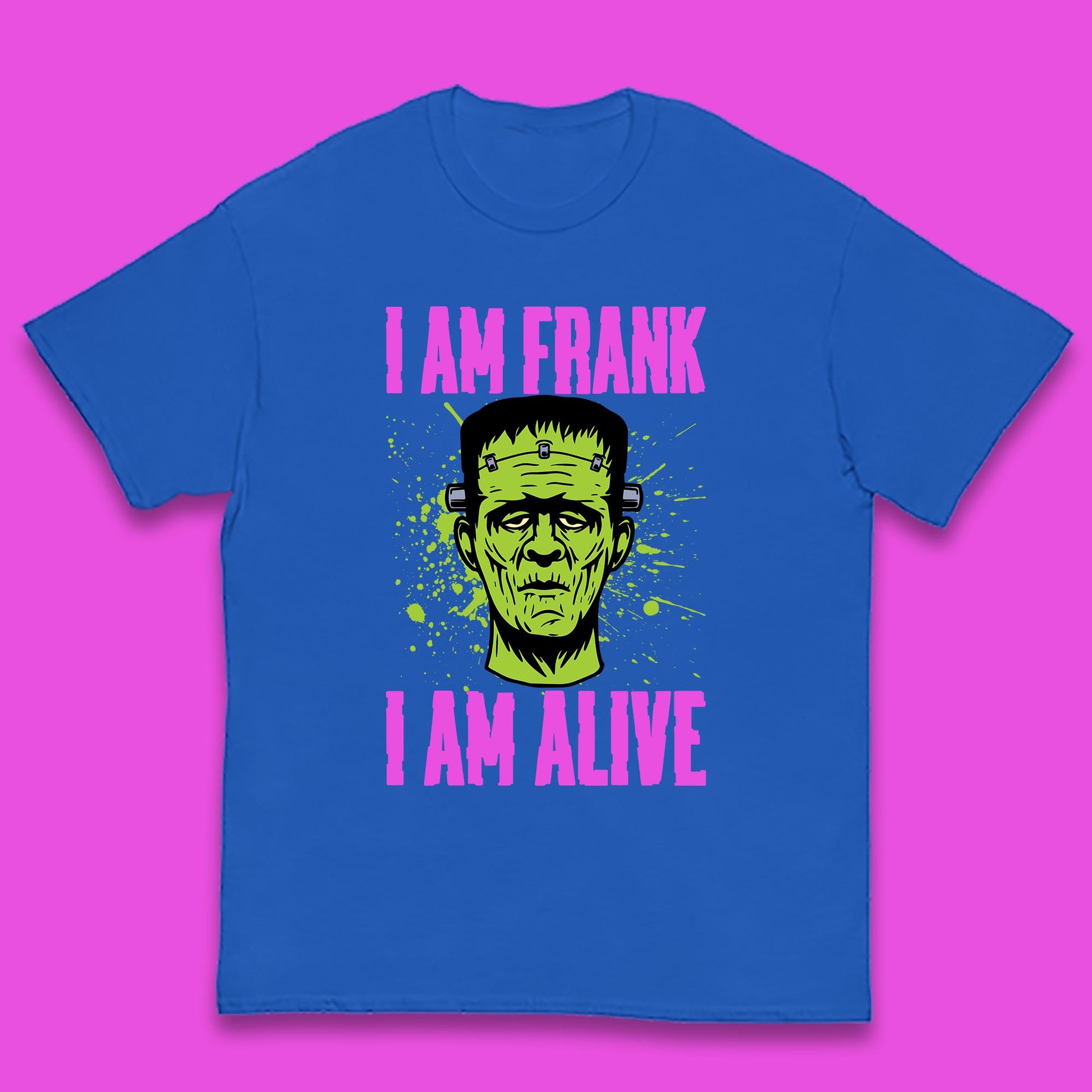 I Am Frank I Am Alive Halloween Green Frankenstein Monster Zombie Horror Face Kids T Shirt