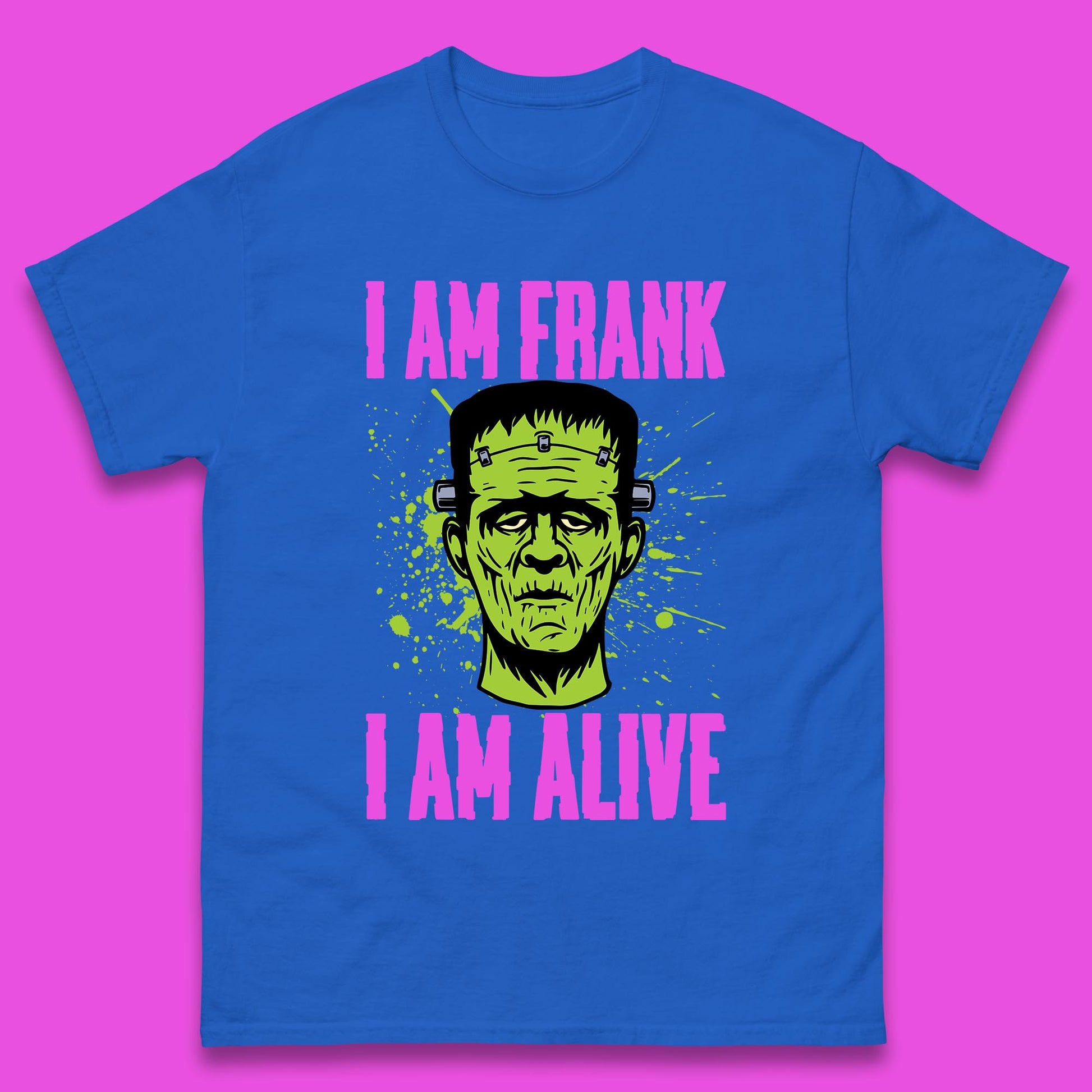 I Am Frank I Am Alive Halloween Green Frankenstein Monster Zombie Horror Face Mens Tee Top