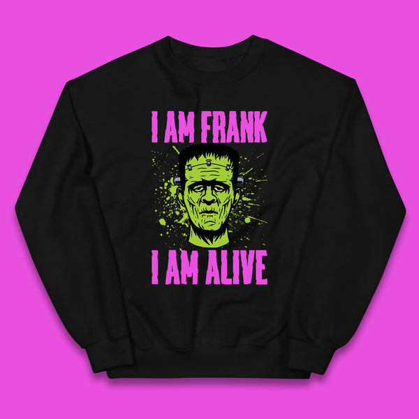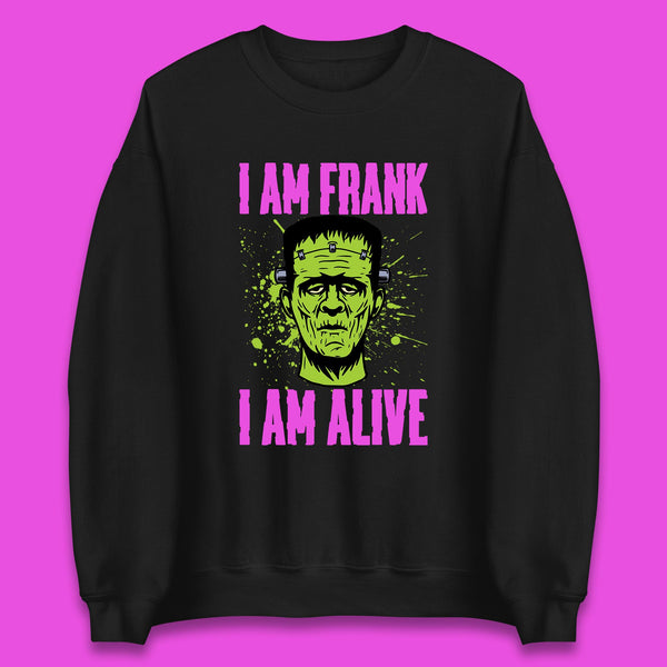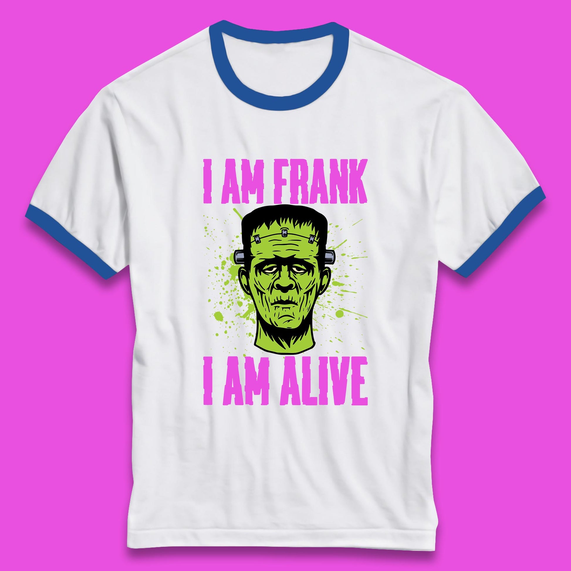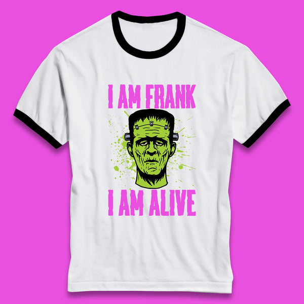 I Am Frank I Am Alive Halloween Green Frankenstein Monster Zombie Horror Face Ringer T Shirt