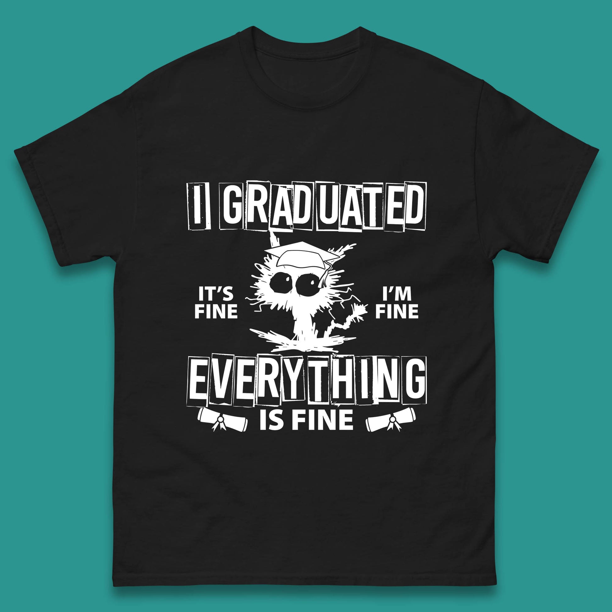 I Graduated It's Fine I'm Fine Everything Is Fine Graduate Class Funny Black Cat Graduation Electrocuted Cat Meme Mens Tee Top