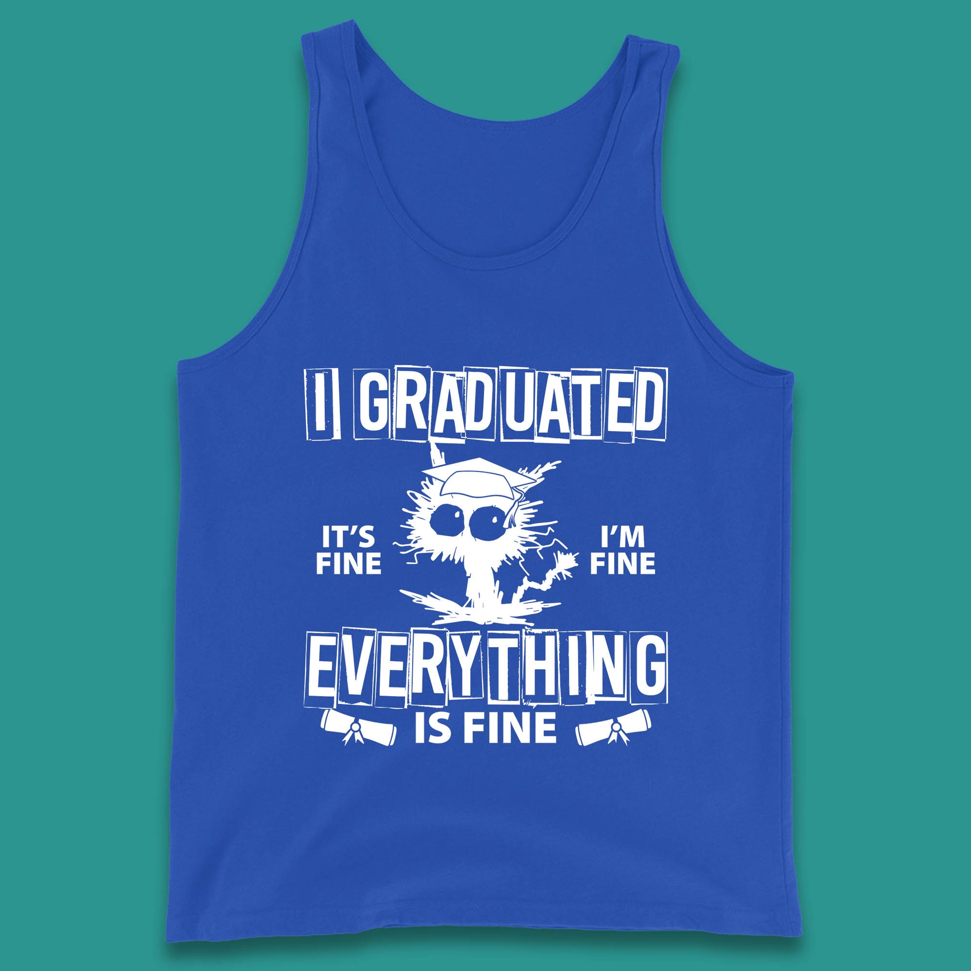 I Graduated It's Fine I'm Fine Everything Is Fine Graduate Class Funny Black Cat Graduation Electrocuted Cat Meme Tank Top