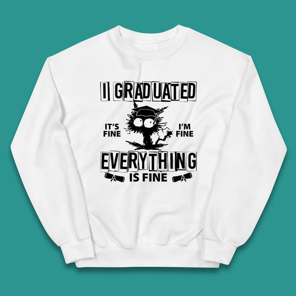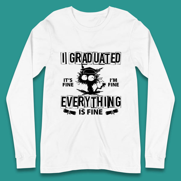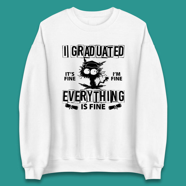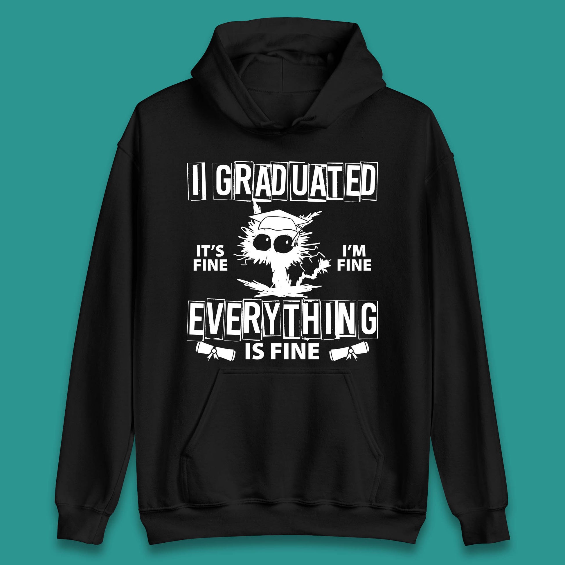 I Graduated It's Fine I'm Fine Everything Is Fine Graduate Class Funny Black Cat Graduation Electrocuted Cat Meme Unisex Hoodie