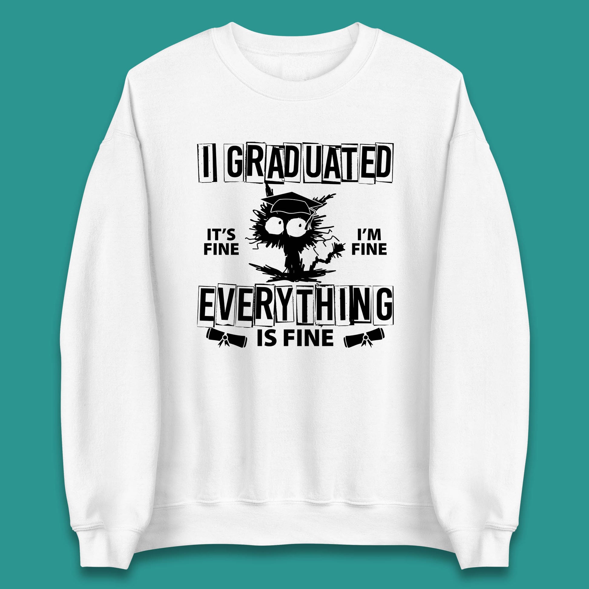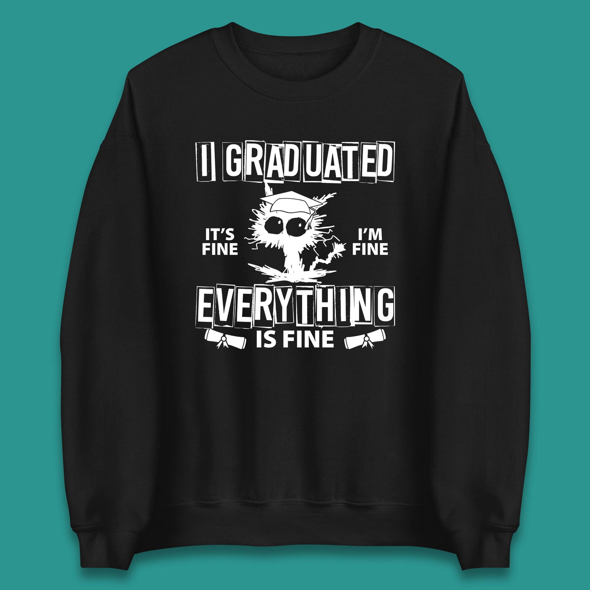 I Graduated It's Fine I'm Fine Everything Is Fine Graduate Class Funny Black Cat Graduation Electrocuted Cat Meme Unisex Sweatshirt