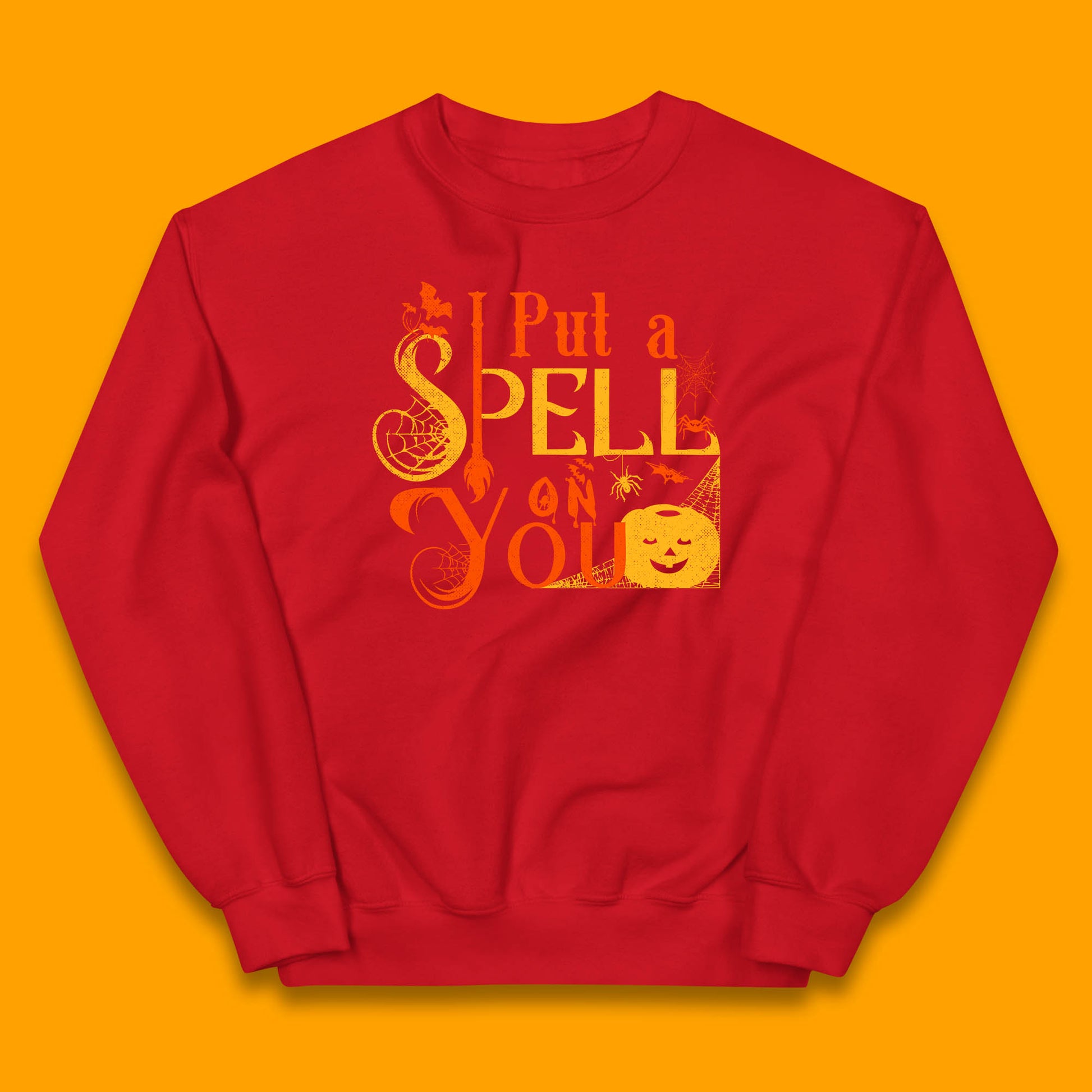 I Put a Spell on You Witch Broom Horror Spooky Scary Halloween Costume Kids Jumper