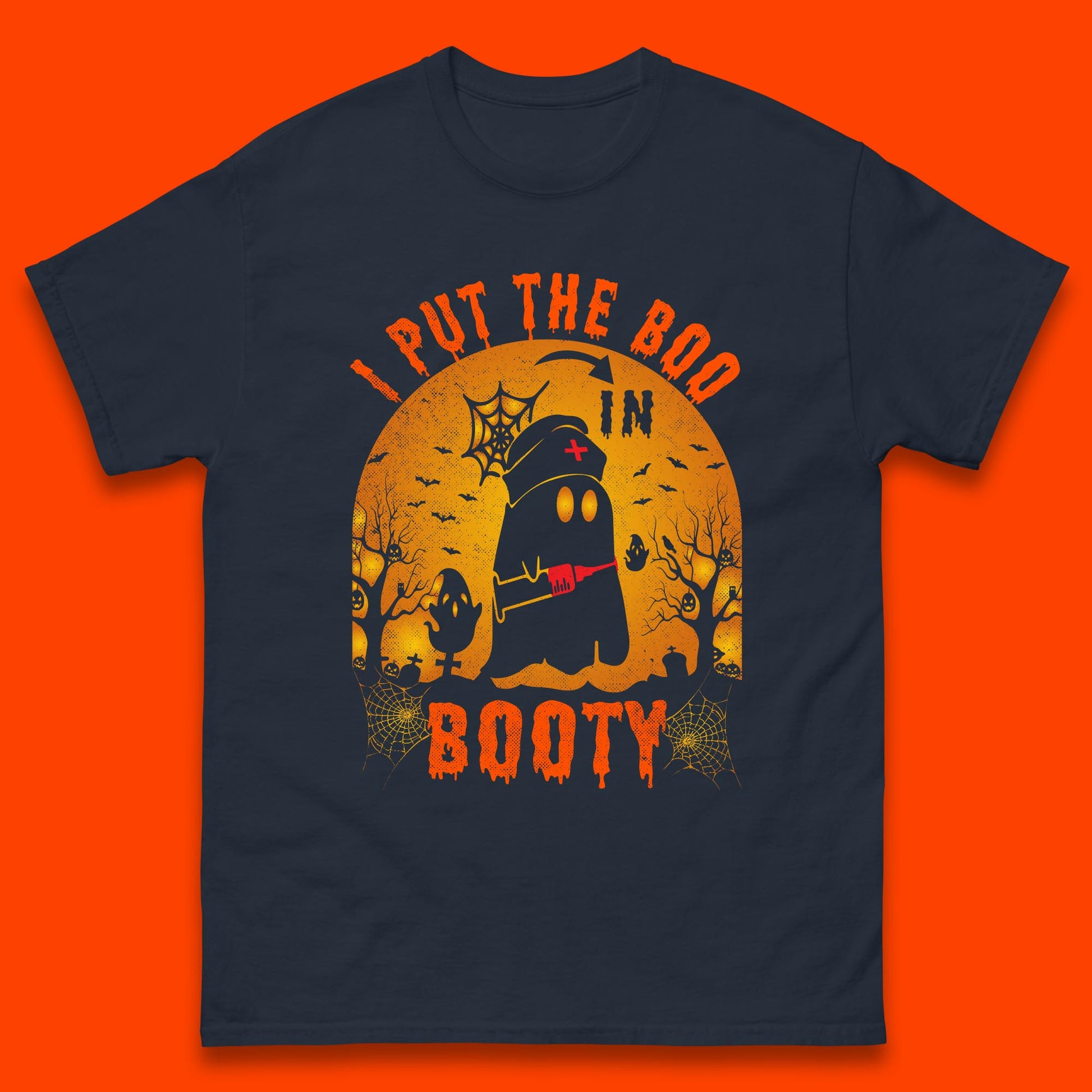 I Put The Boo In Booty Nurse Ghost Syringe Funny Halloween Nursing Boo Ghost Costume Mens Tee Top