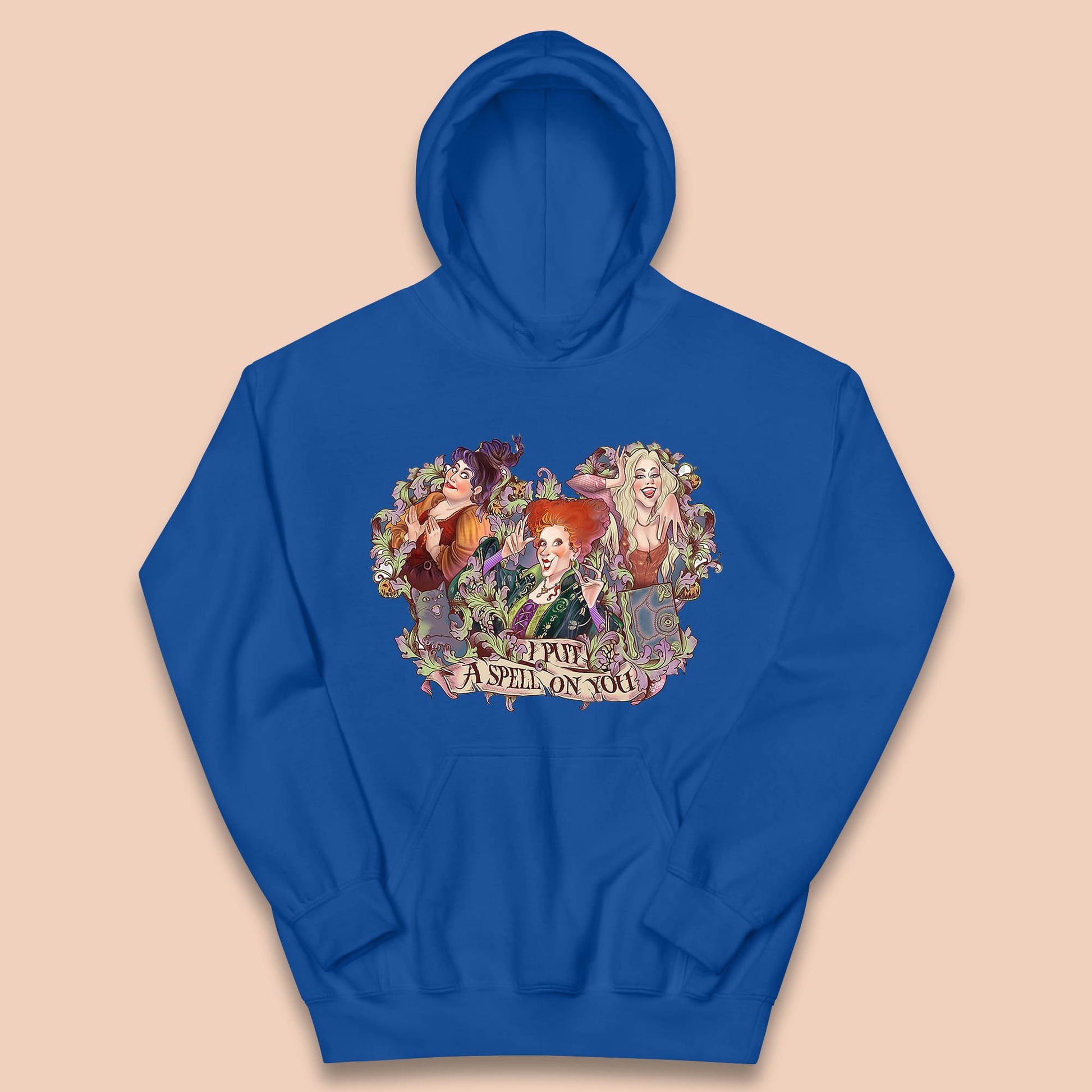 I Putt A Spell On You Halloween Sanderson Sisters Hocus Pocus Vintage Witches Kids Hoodie