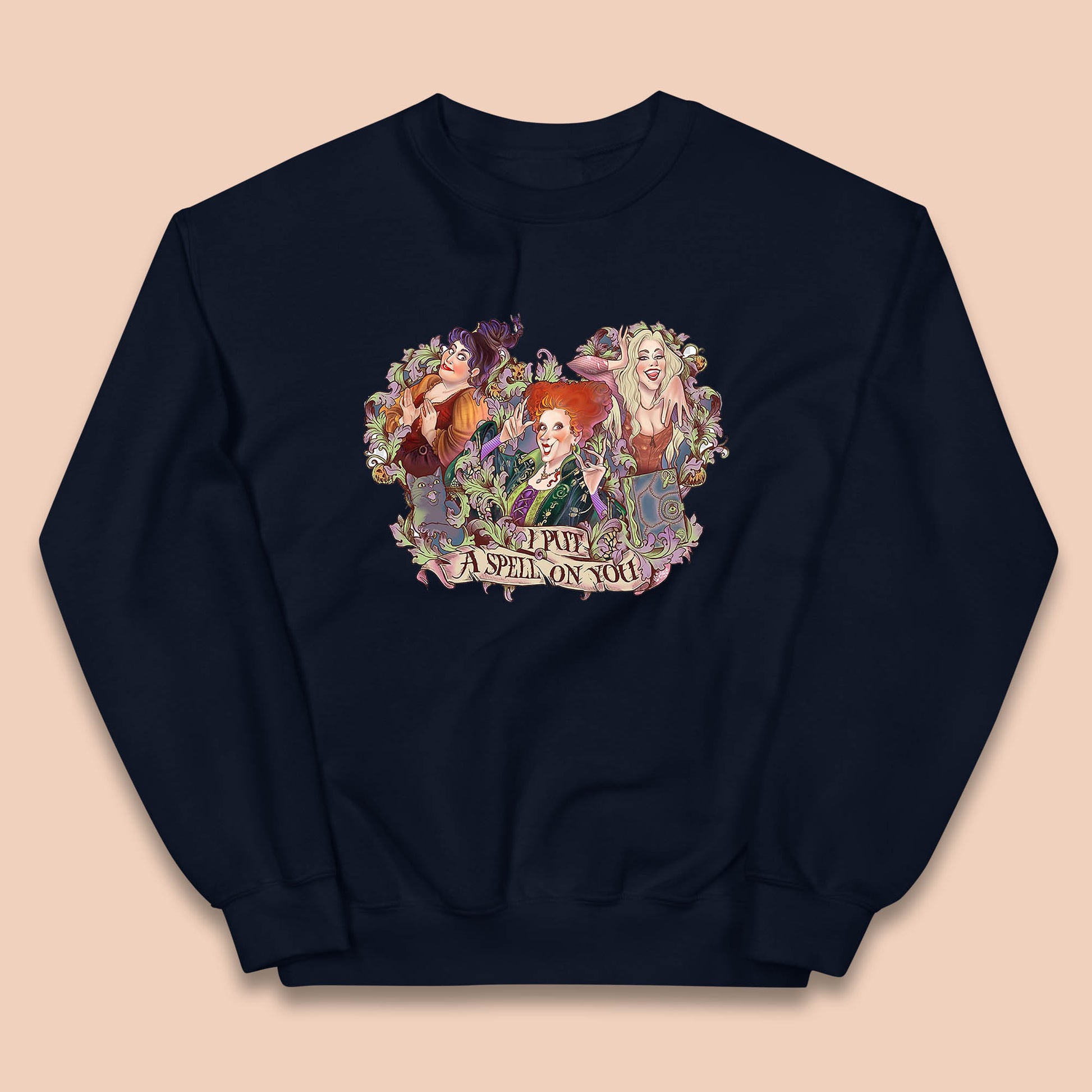I Putt A Spell On You Halloween Sanderson Sisters Hocus Pocus Vintage Witches Kids Jumper