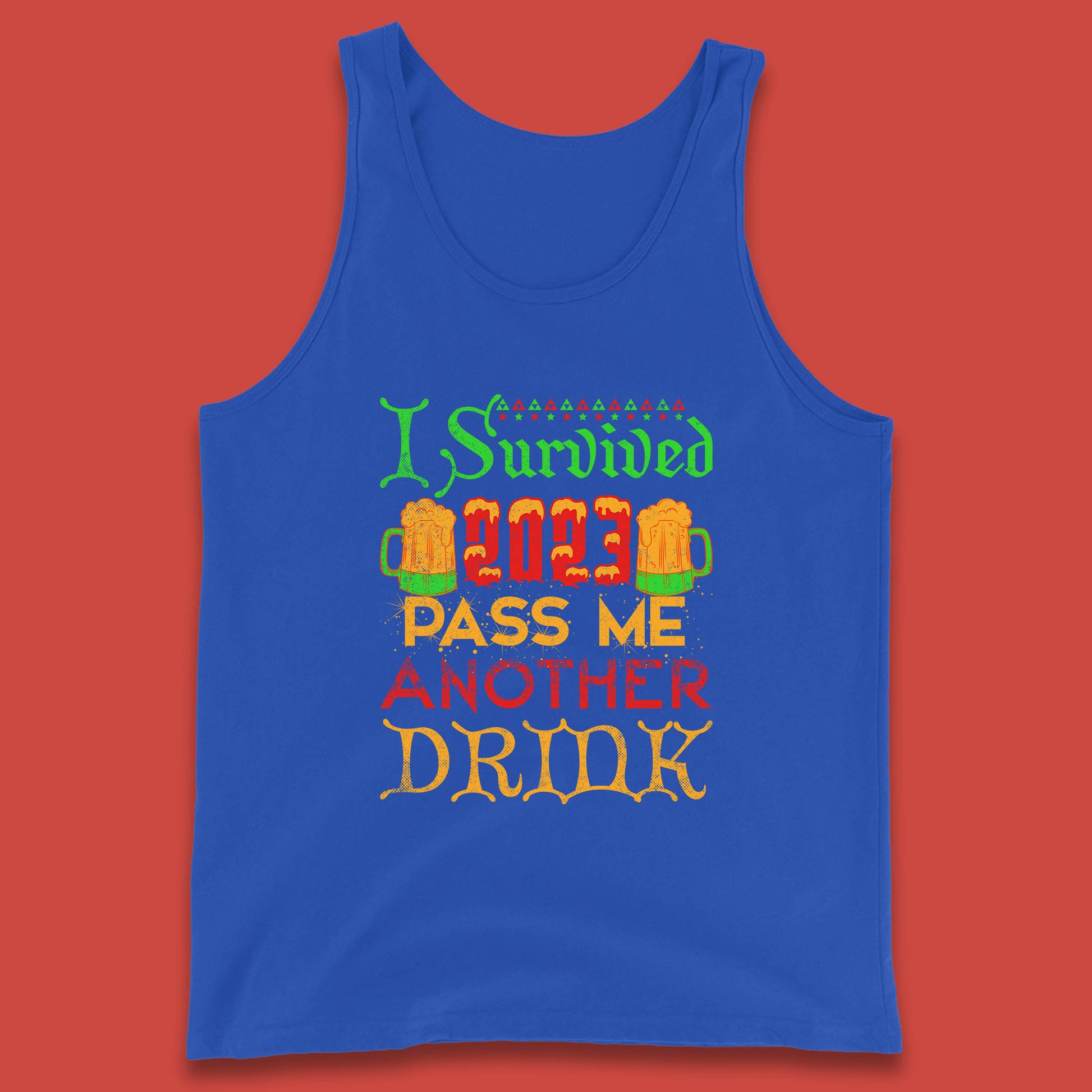 I Survived 2023 Pass Me Another Drink Christmas Beer Drinking Lover Xmas Tank Top