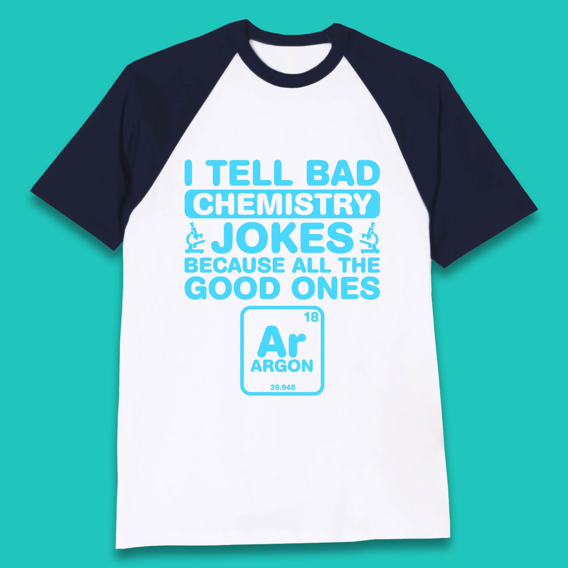 I Tell Bad Chemistry Jokes Because All The Good Ones Argon Funny Science Chemistry Jokes Periodic Table Baseball T Shirt