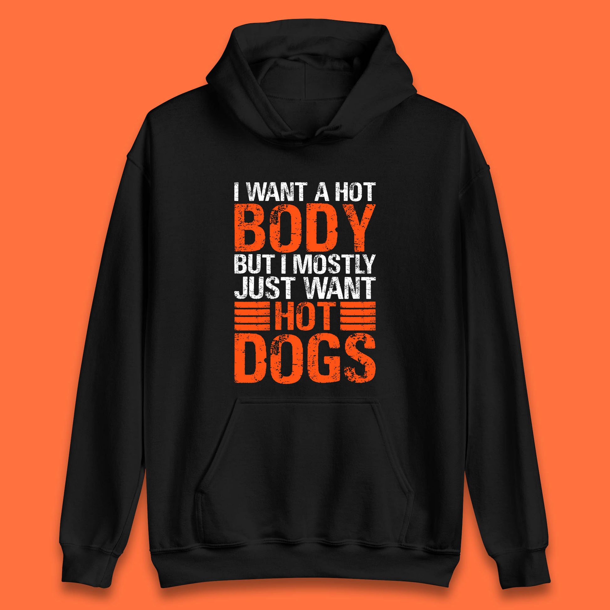 I Want A Hot Body But I Mostly Just Want Hot Dogs Funny Gym Workout Humor Hot Dog Lover Unisex Hoodie