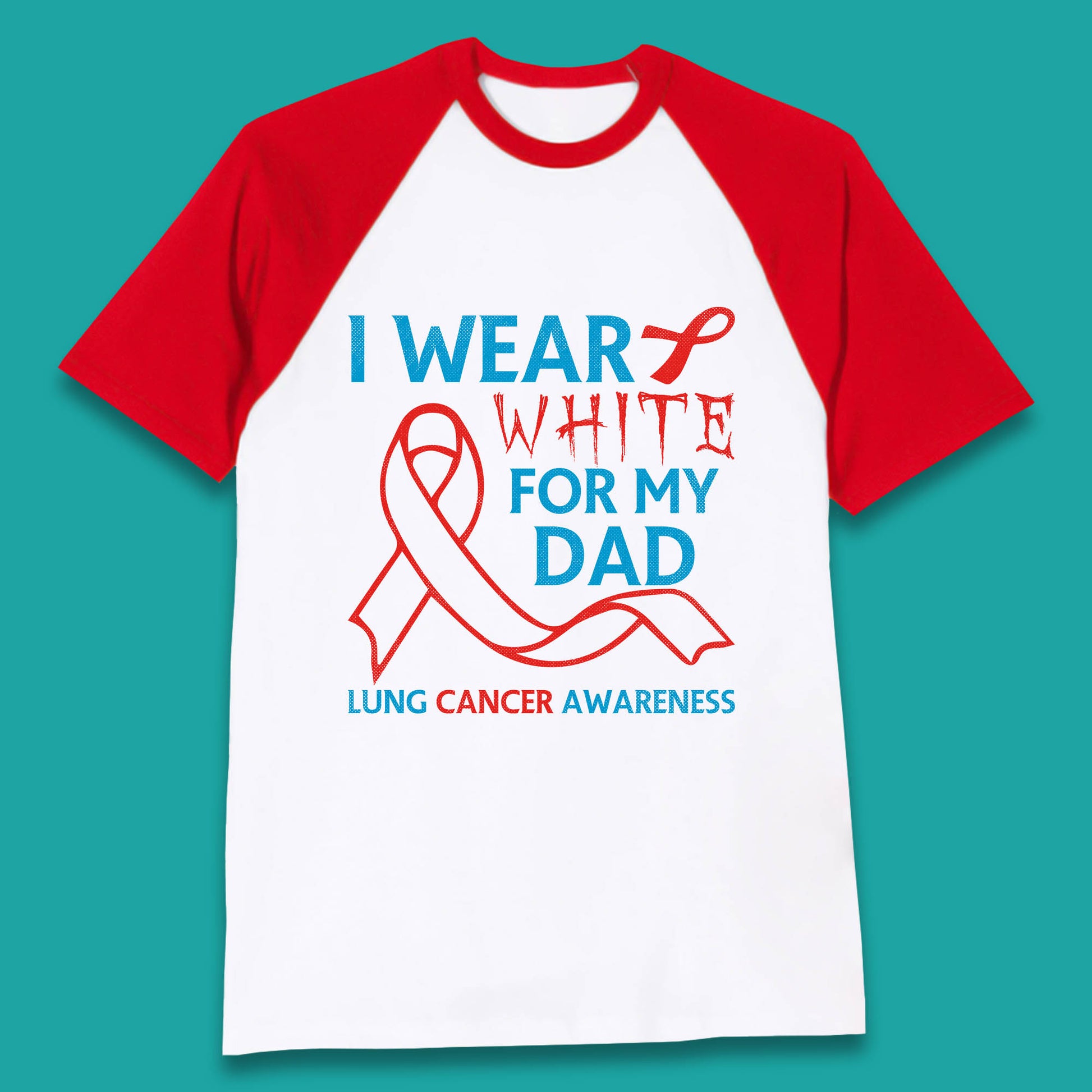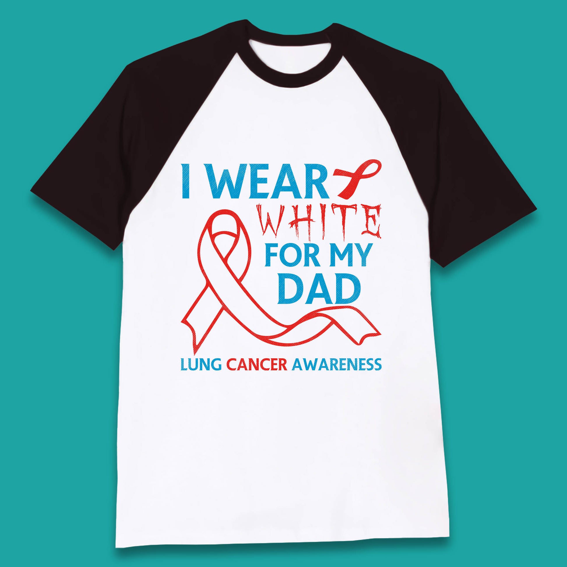 I Wear White For My Dad Lung Cancer Awareness Fighter Survivor Baseball T Shirt
