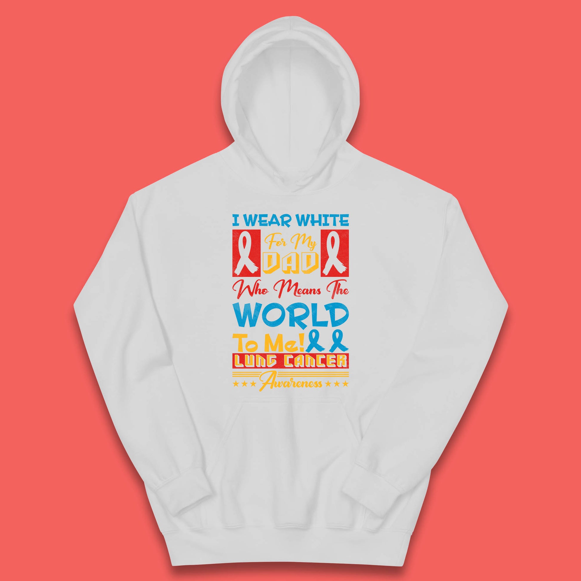 I Wear White For My Dad Who Means The World To Me Lung Cancer Awareness Cancer Fighter Survivor Kids Hoodie