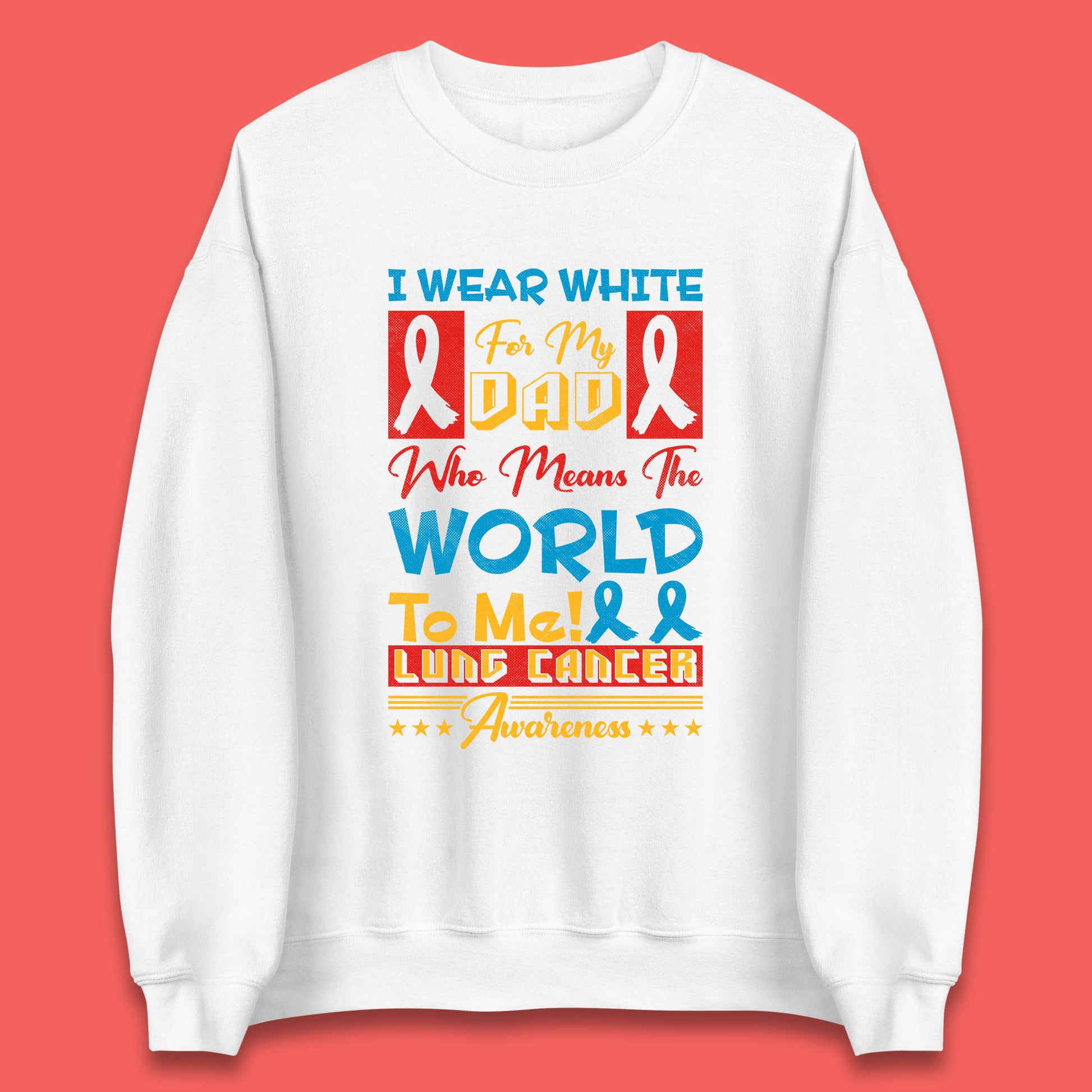 I Wear White For My Dad Who Means The World To Me Lung Cancer Awareness Cancer Fighter Survivor Unisex Sweatshirt