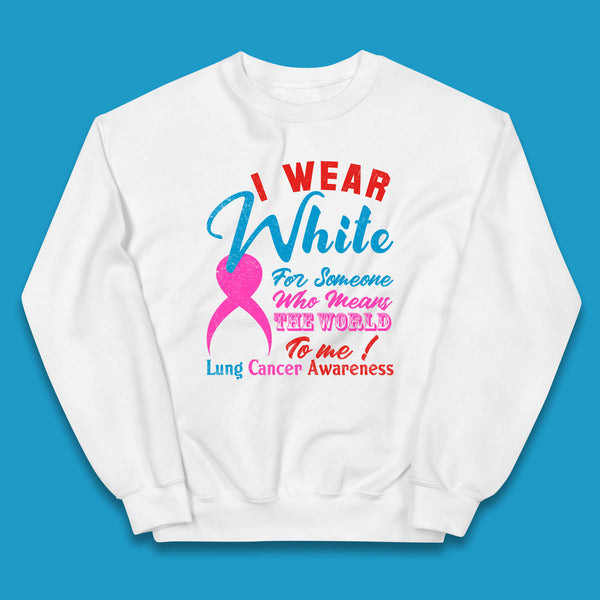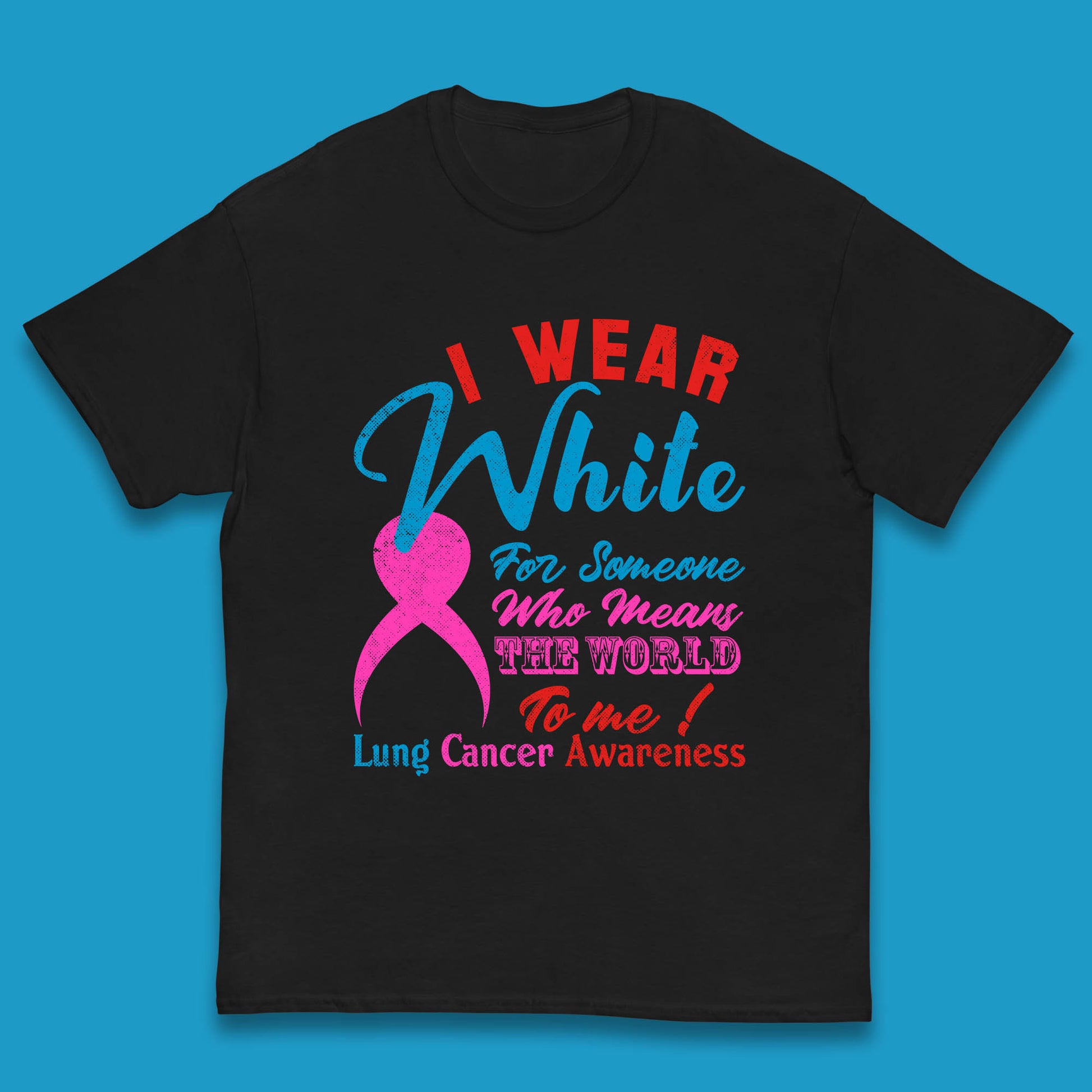 I Wear White For Someone Who Means The World To Me Lung Cancer Awareness Warrior Kids T Shirt