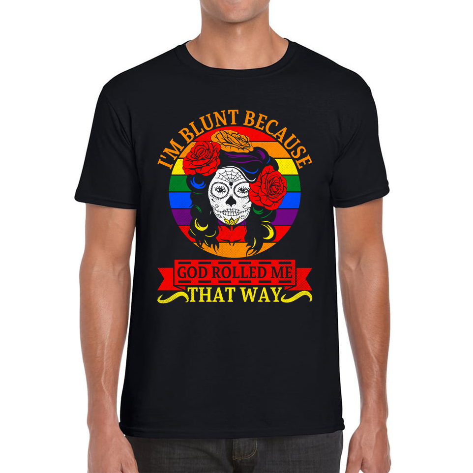 I'm Blunt Because God Rolled Me That Way Vintage Mexican Halloween Horror LGBT Awareness Pride Mens Tee Top