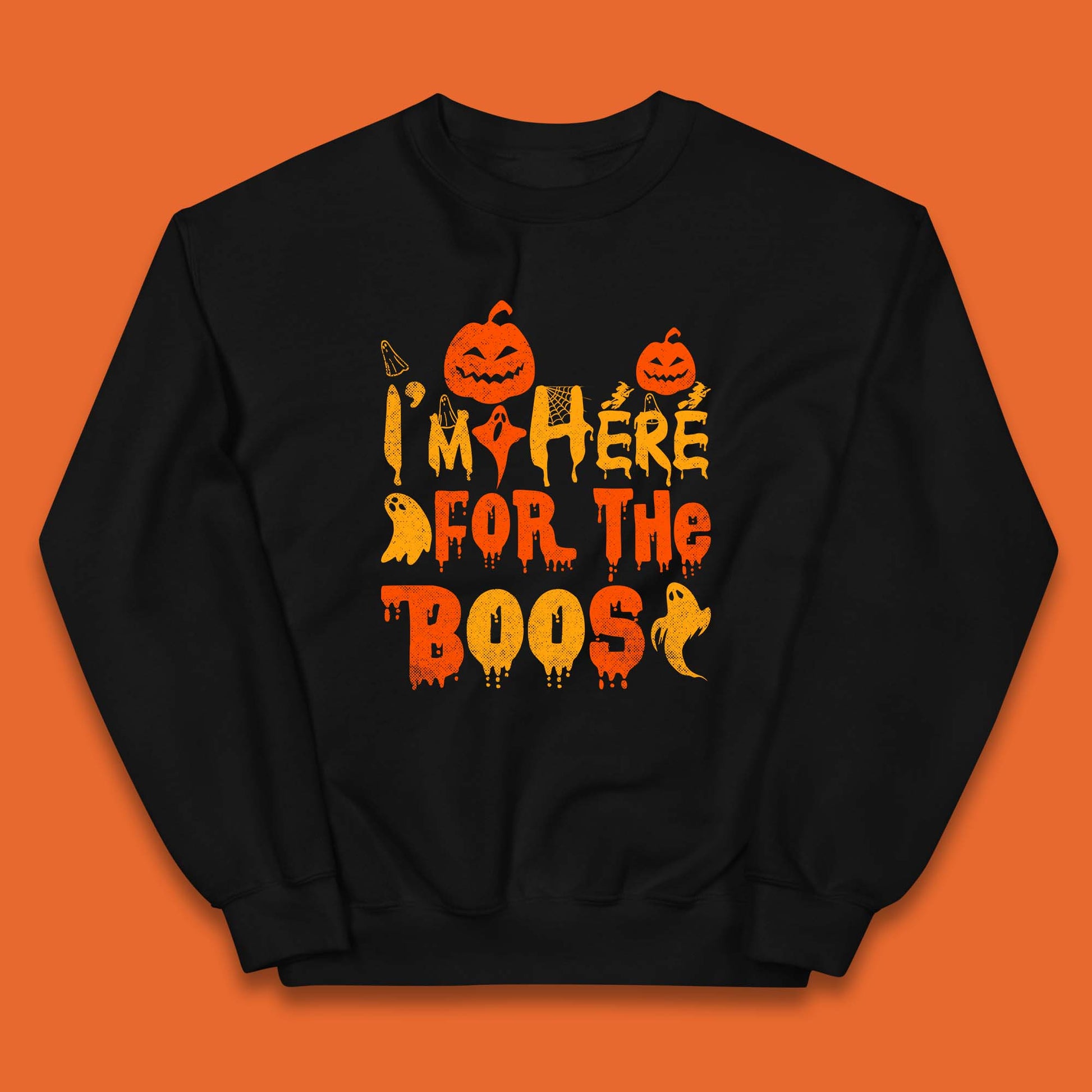 I'm Here For The Boos Halloween Pumpkin Ghost Horror Scary Kids Jumper