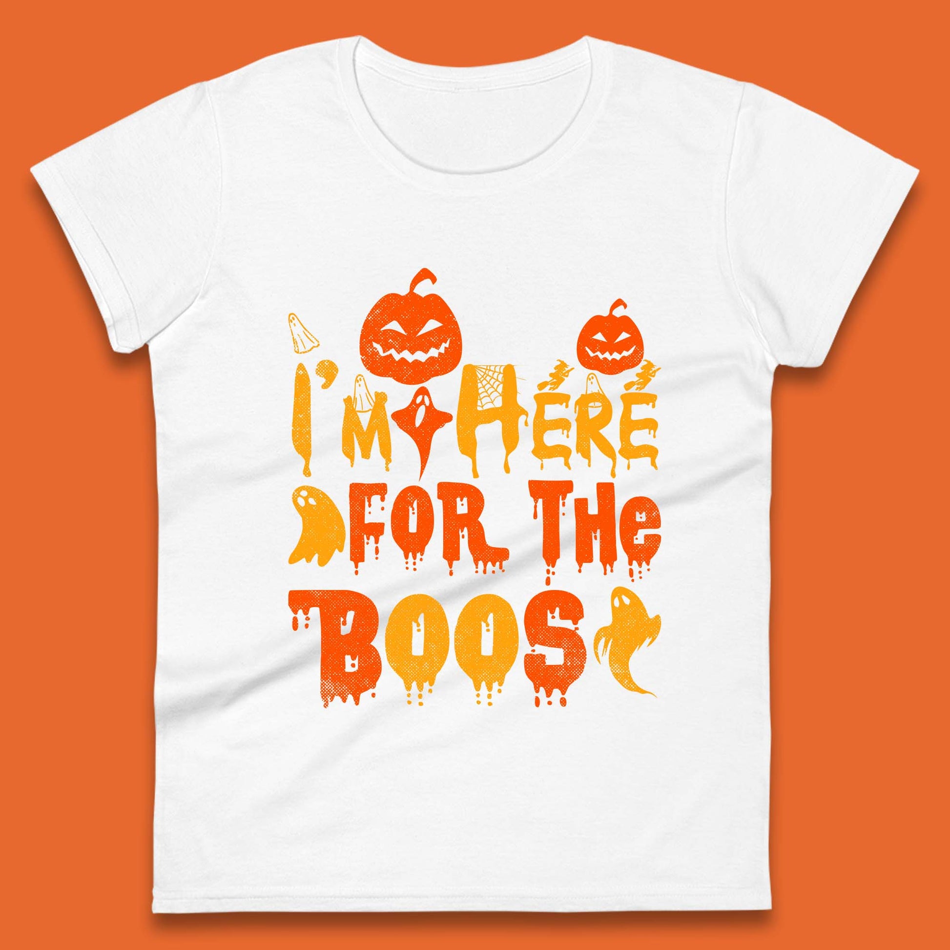 I'm Here For The Boos Halloween Pumpkin Ghost Horror Scary Womens Tee Top
