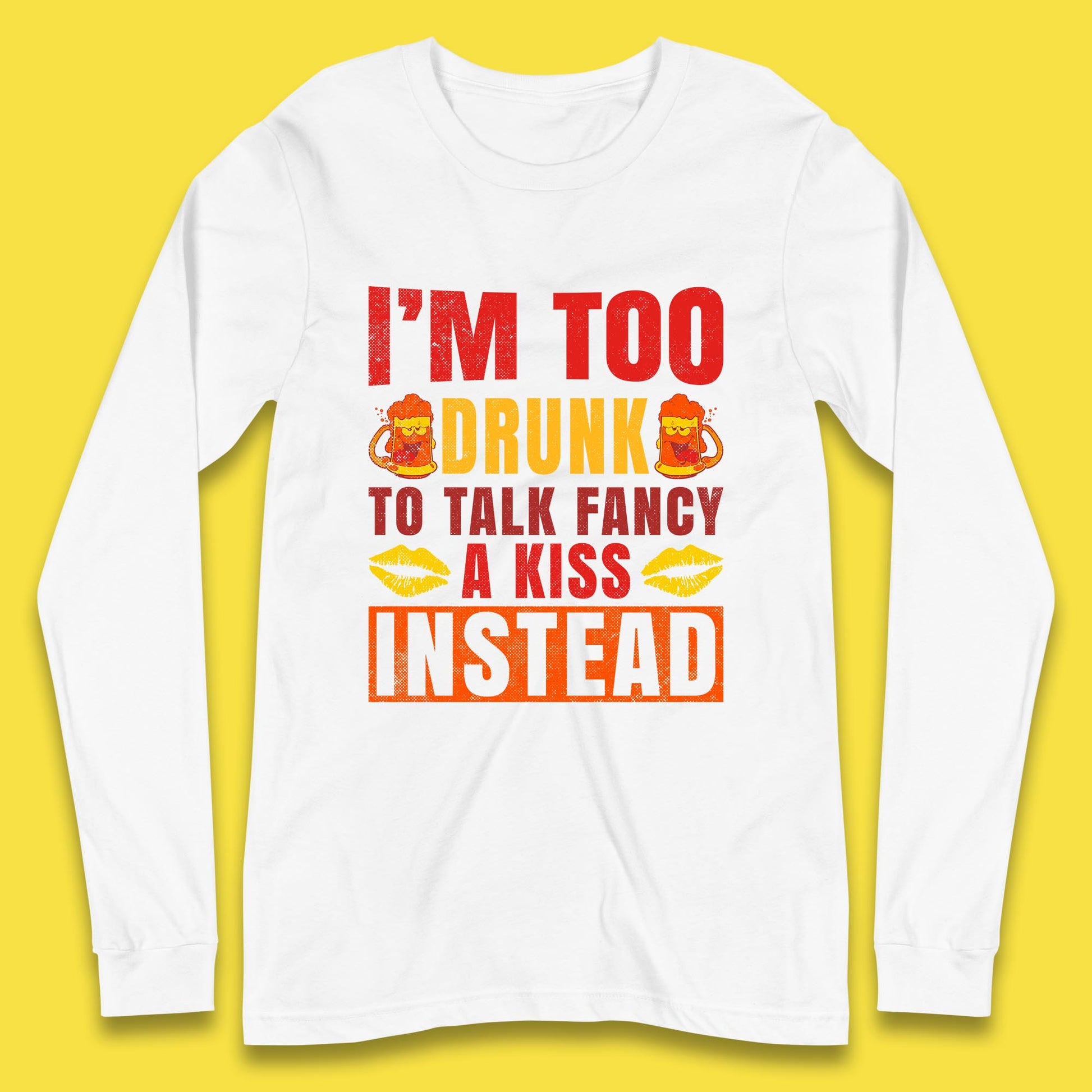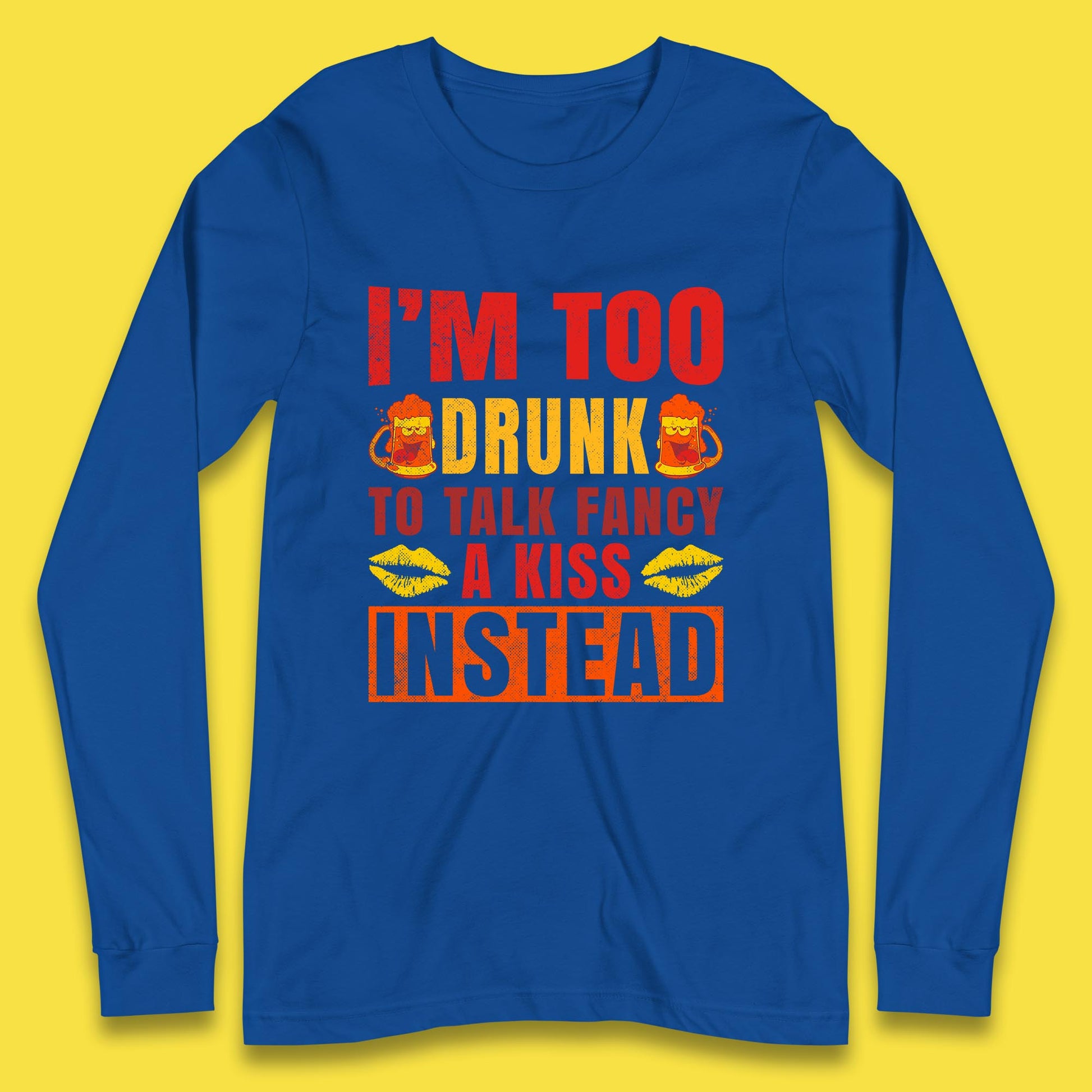 I'm Too Drunk To Talk Fancy A Kiss Instead Funny Drinking Sarcastic Humours Long Sleeve T Shirt