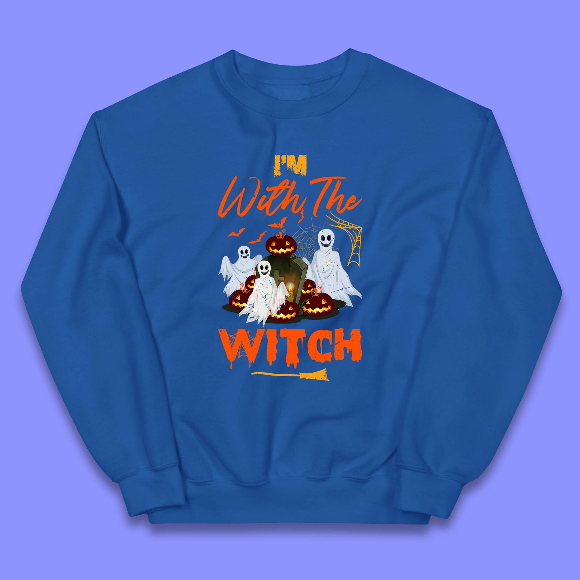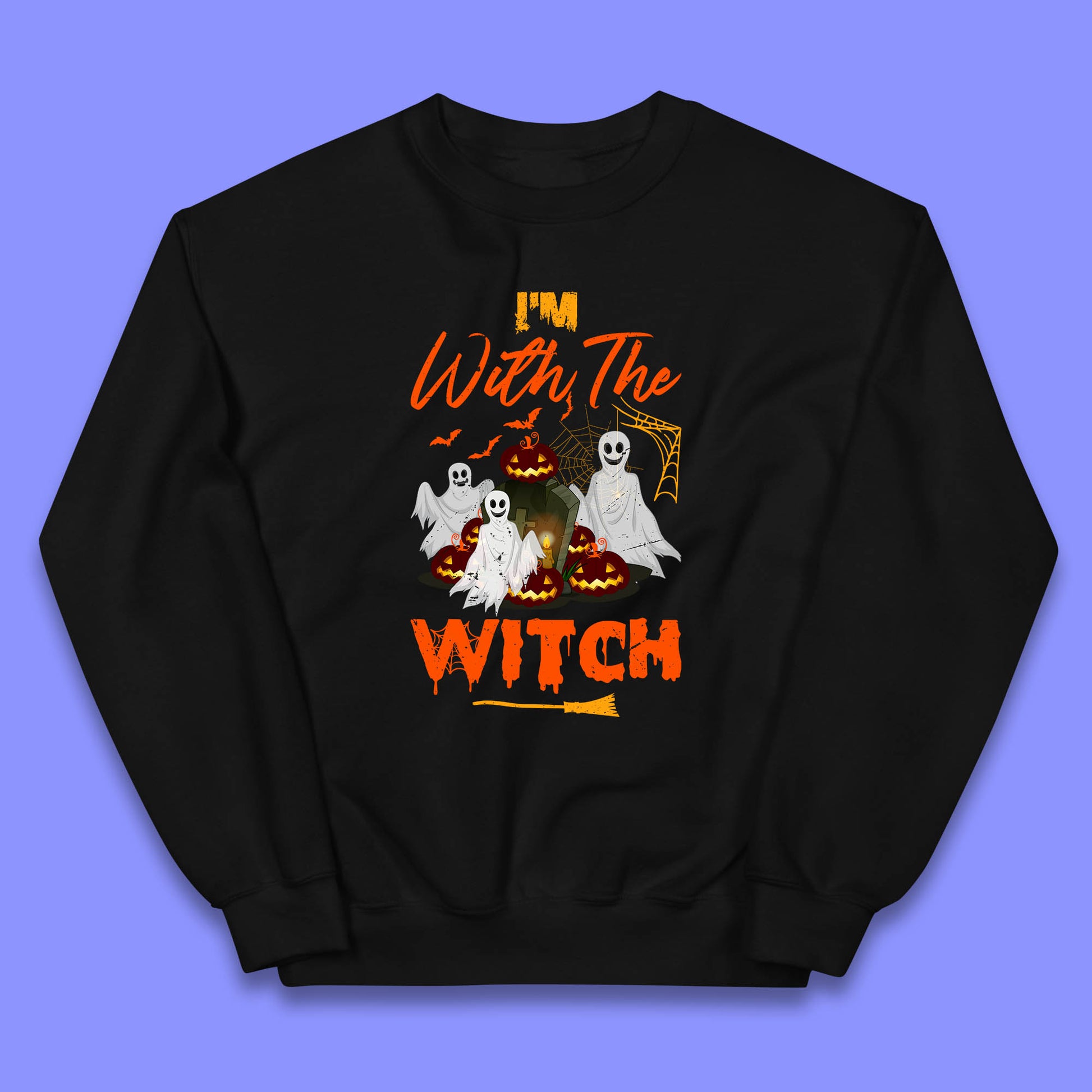 I'm With The Witch Halloween Ghosts With Jack-O-Lantern Horror Pumpkins Kids Jumper