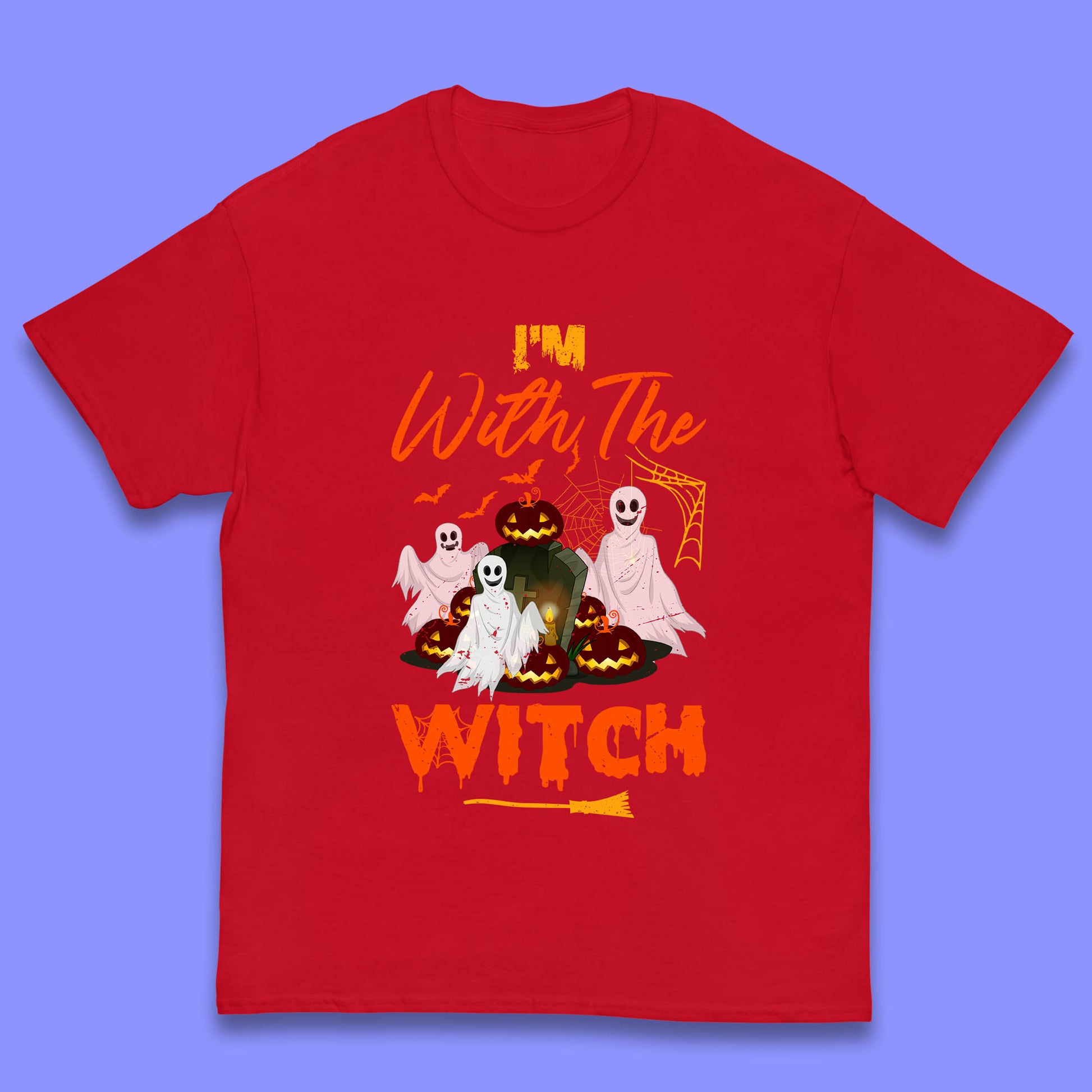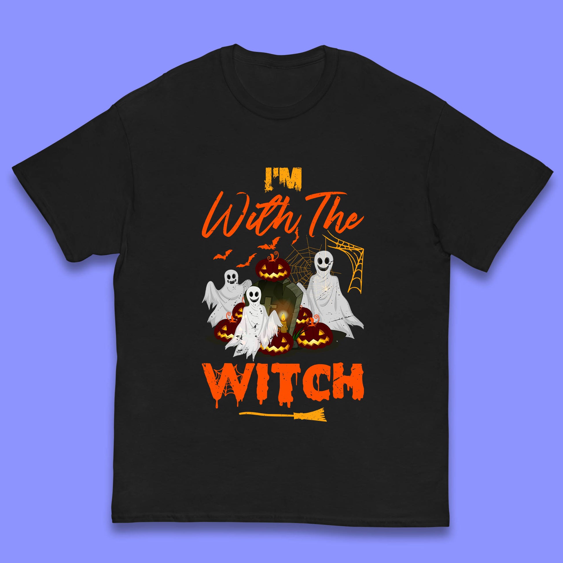 I'm With The Witch Halloween Ghosts With Jack-O-Lantern Horror Pumpkins Kids T Shirt