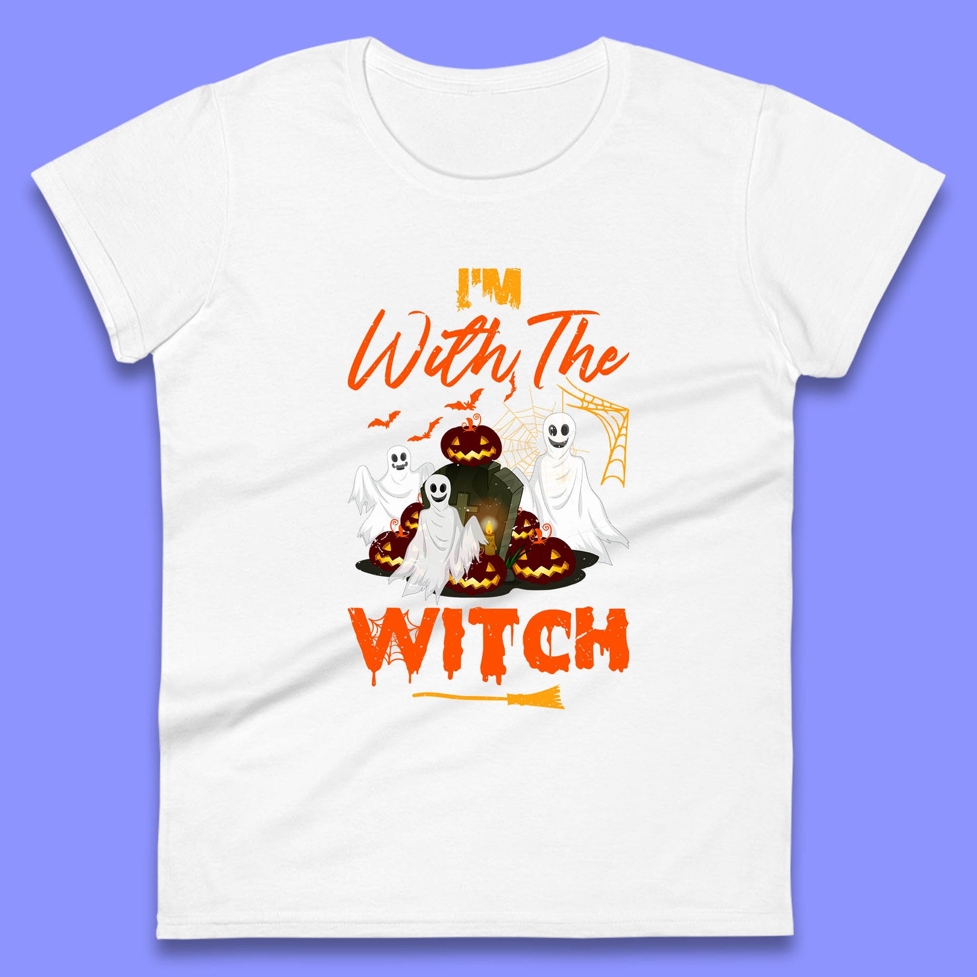I'm With The Witch Halloween Ghosts With Jack-O-Lantern Horror Pumpkins Womens Tee Top