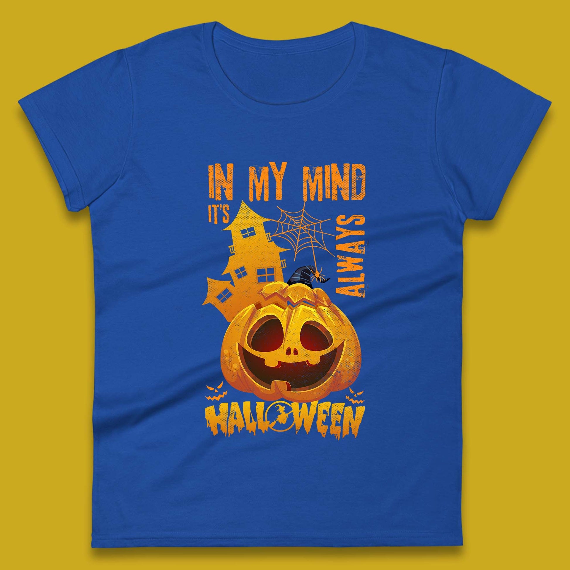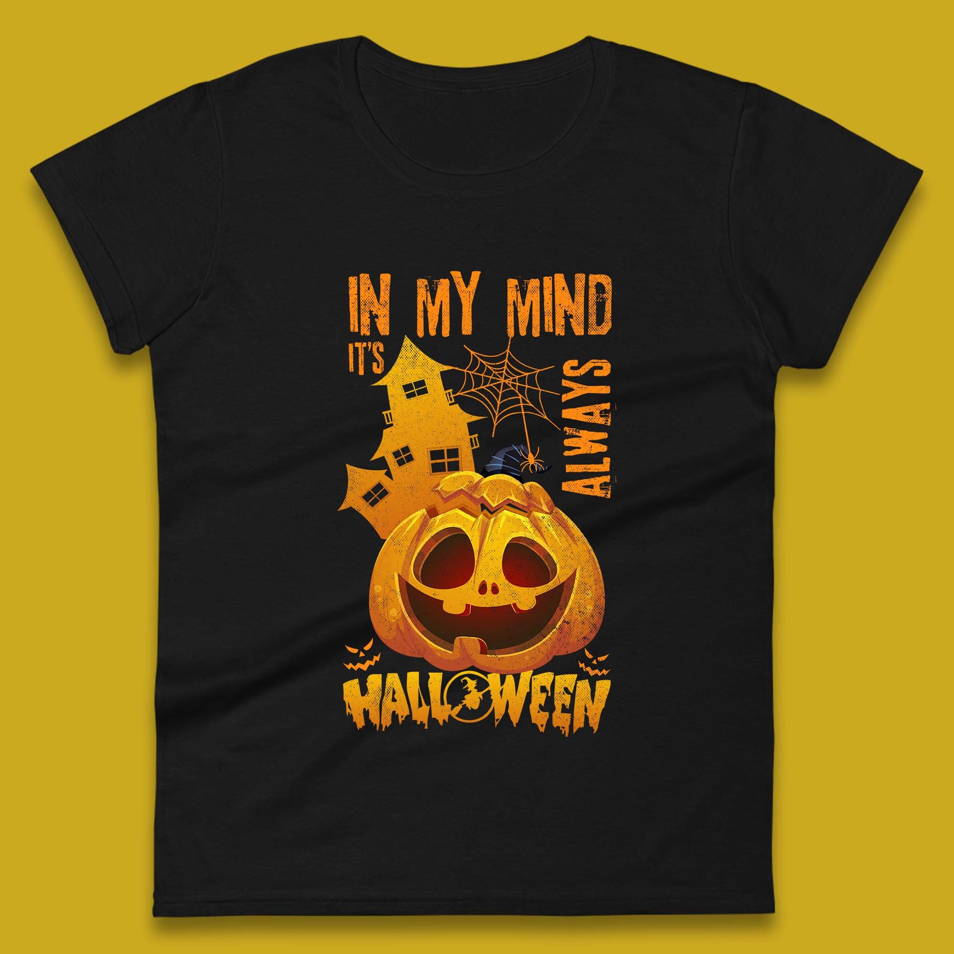 In My Mind It's Always Halloween Haunted House Horror Scary Monster Pumpkin Womens Tee Top