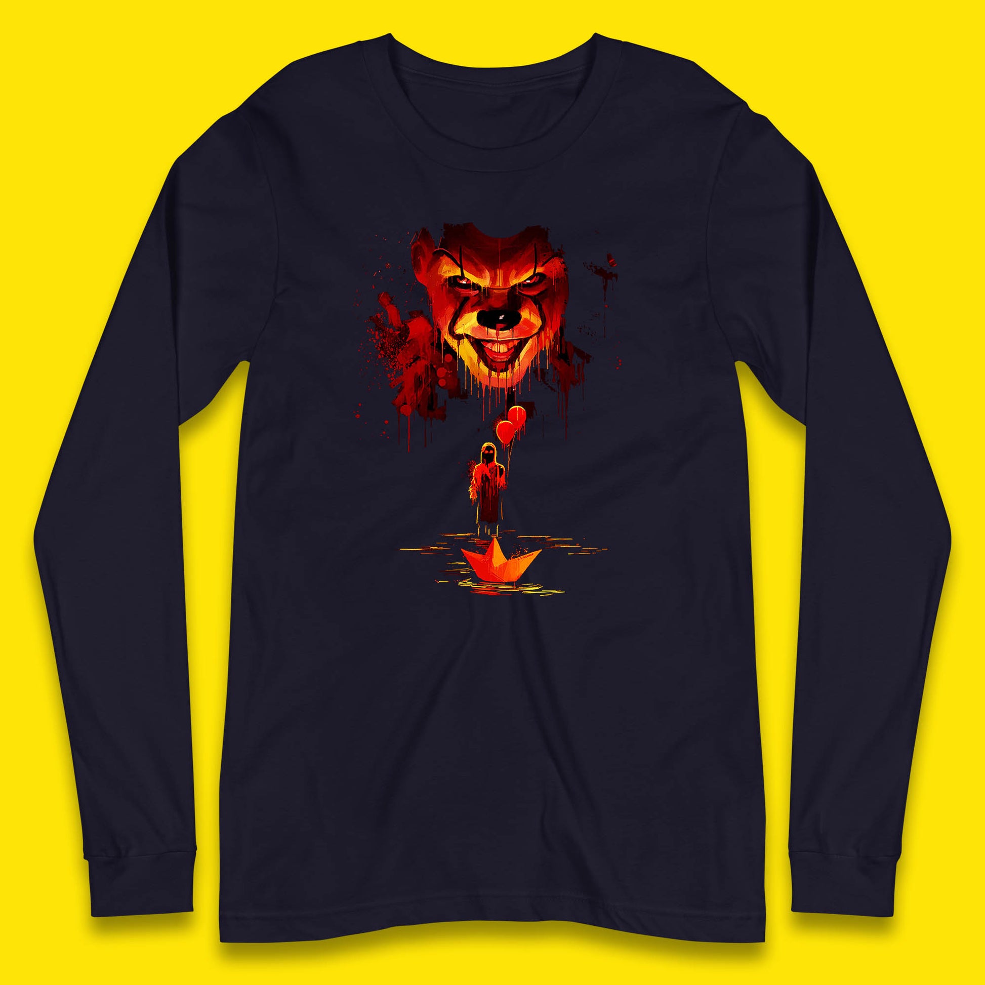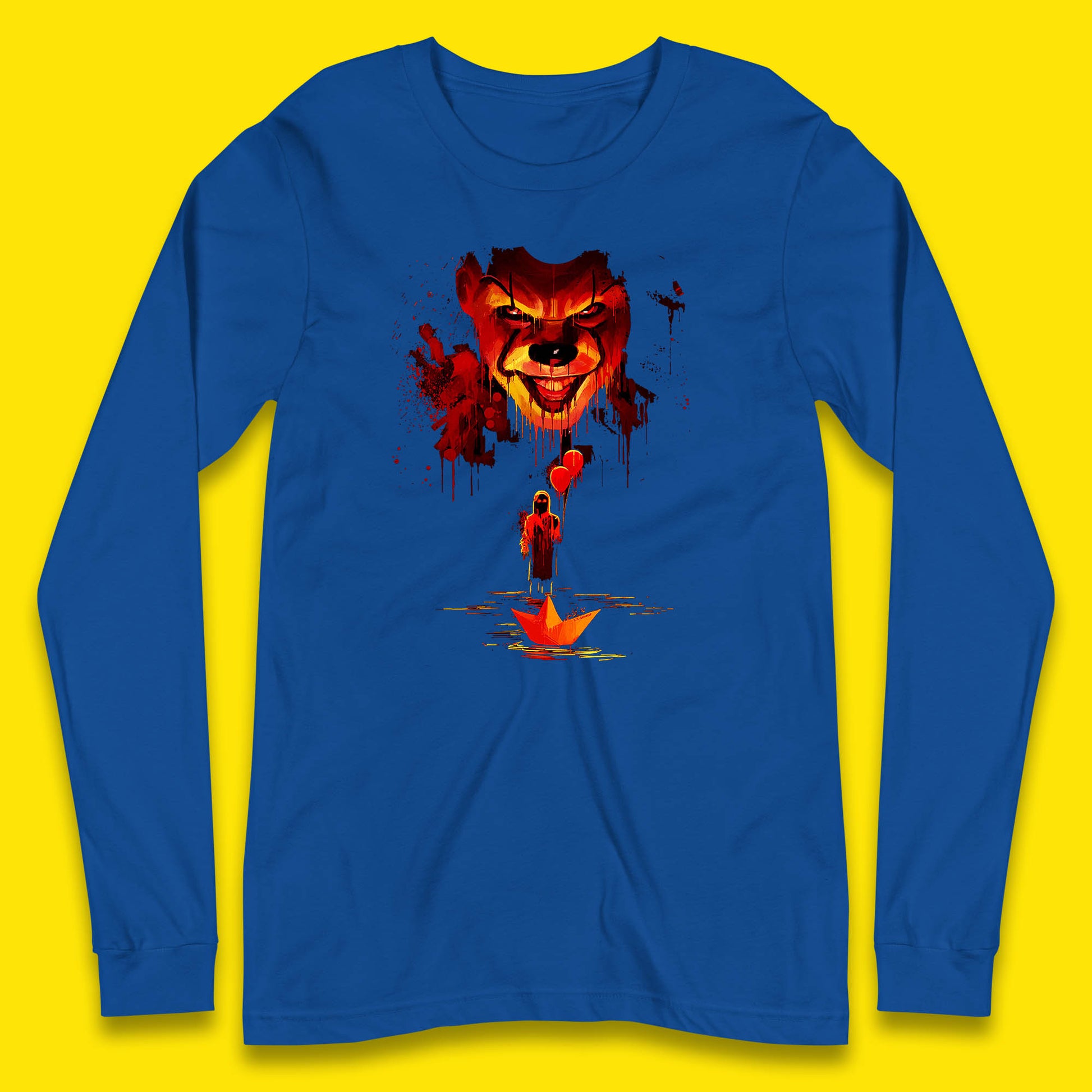 IT Clown Pennywise Halloween Horror Movie Character Serial Killer Clown Costume Long Sleeve T Shirt