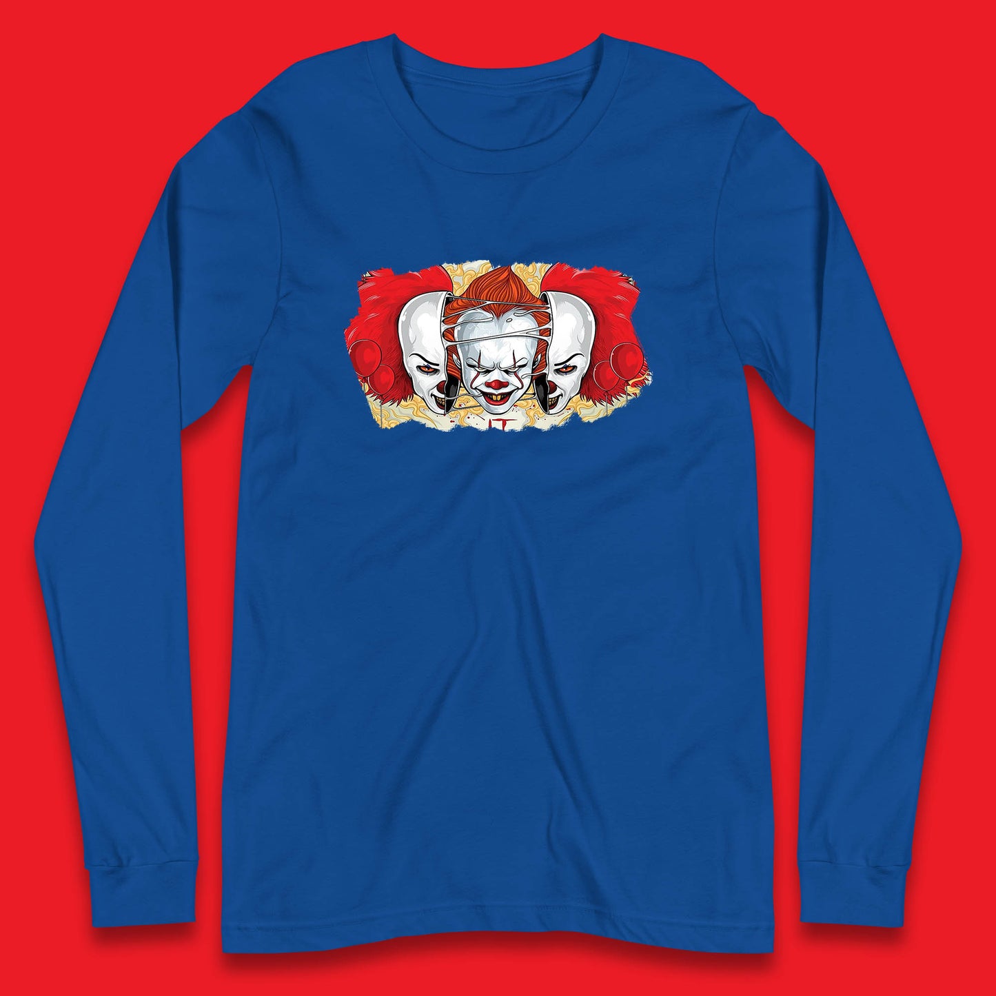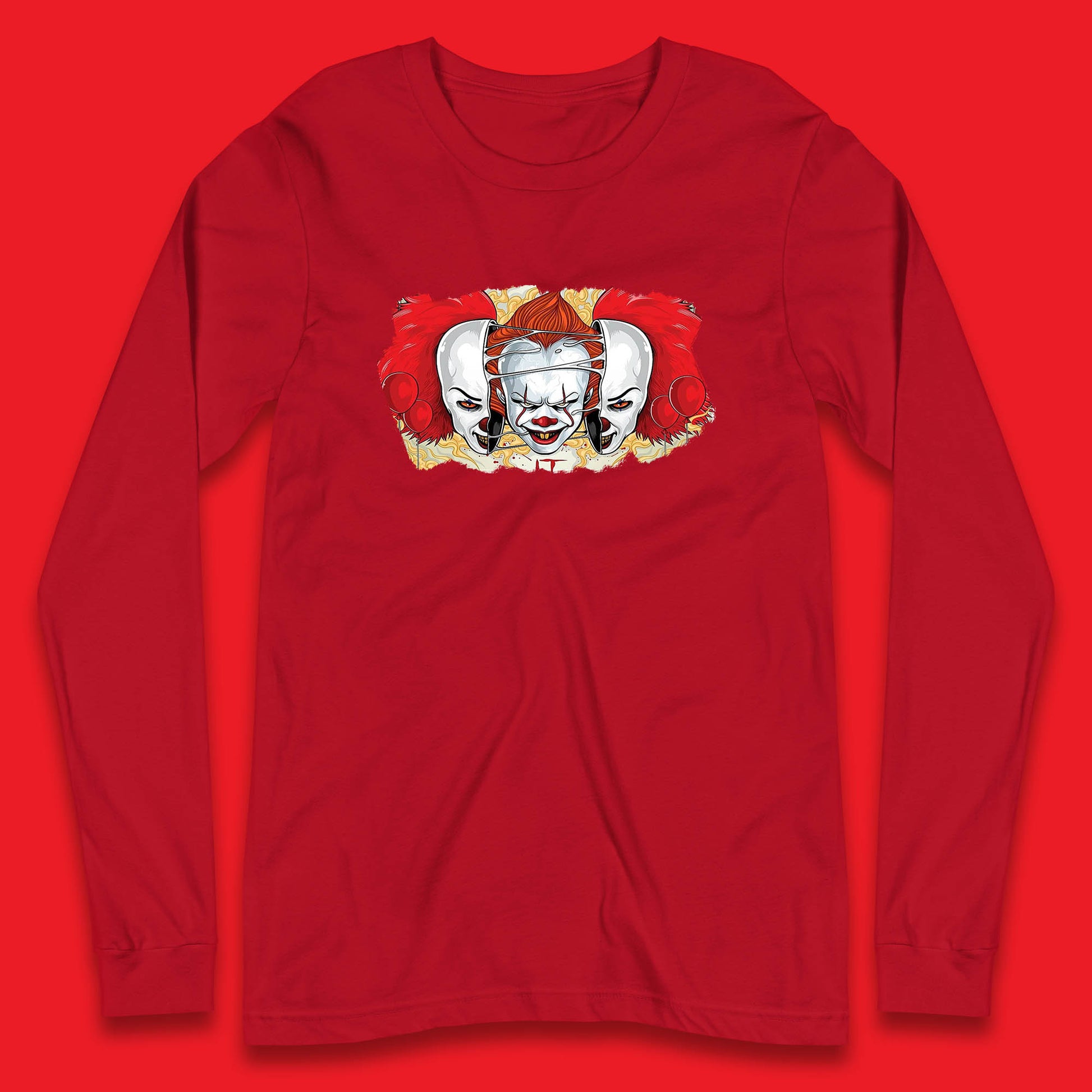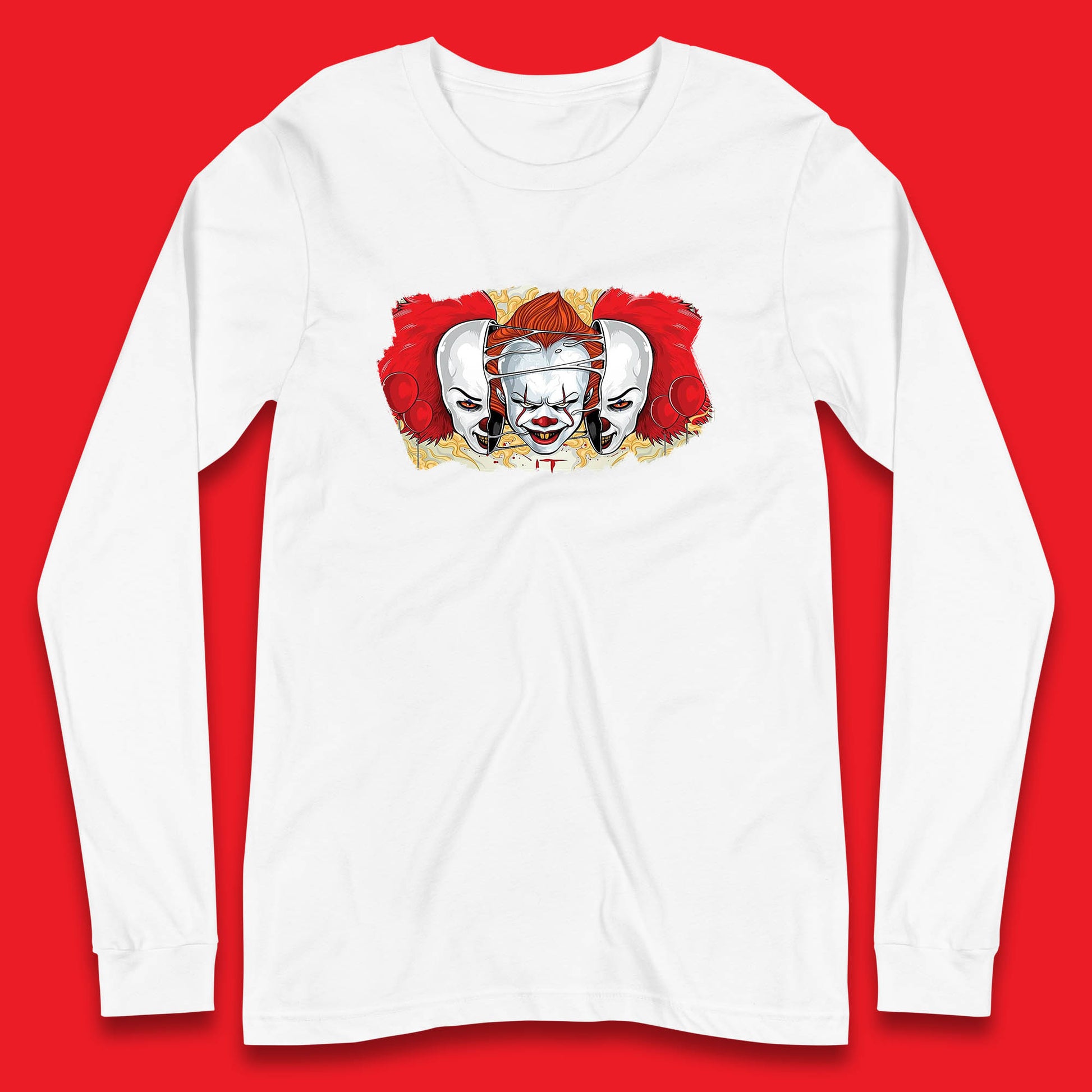 IT Pennywise Clown Halloween Horror Movie Character Evil Clown Costume Serial Killer Long Sleeve T Shirt