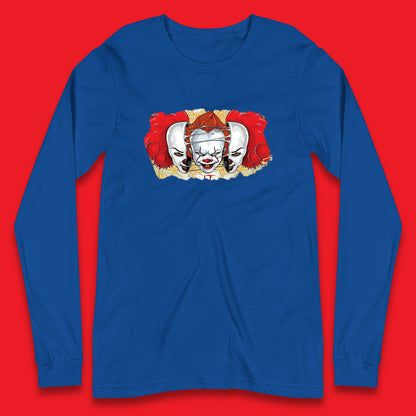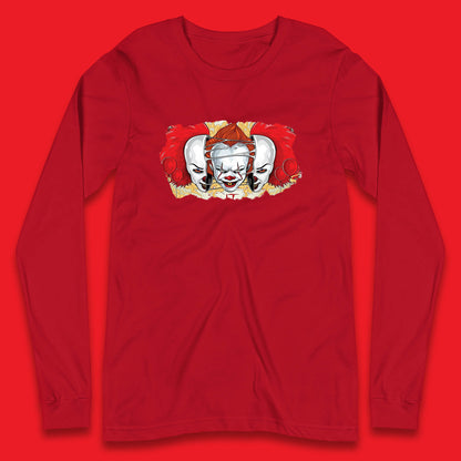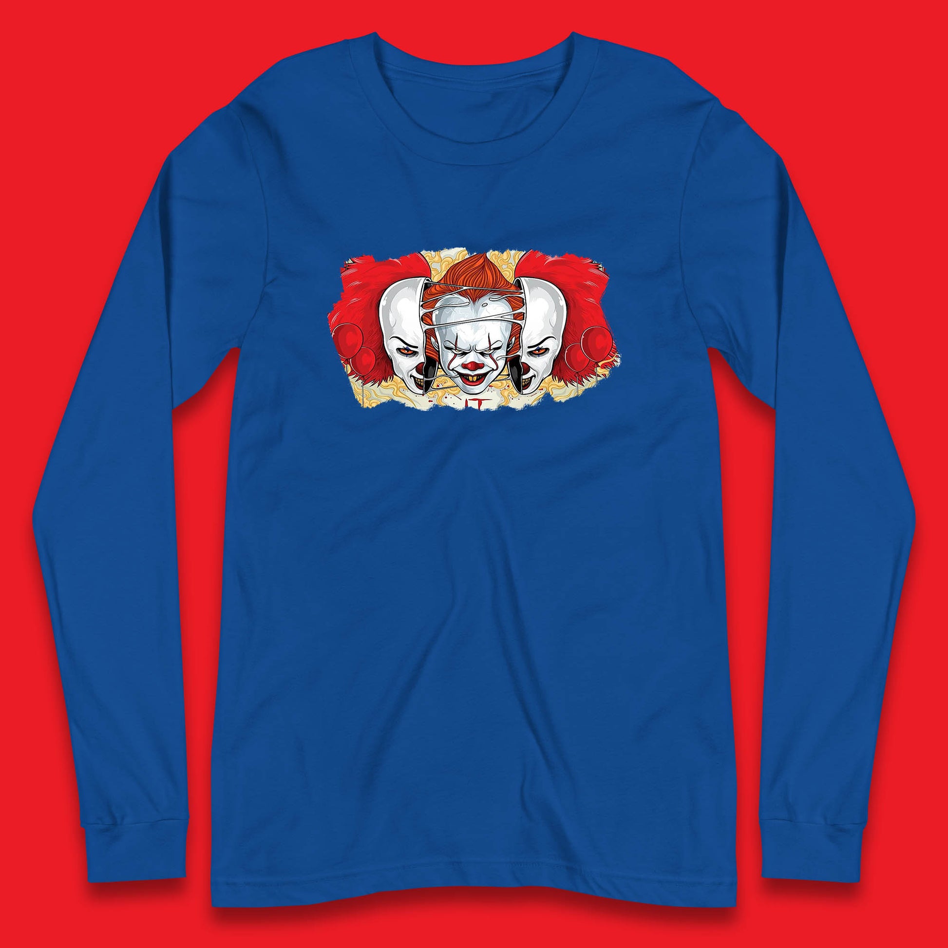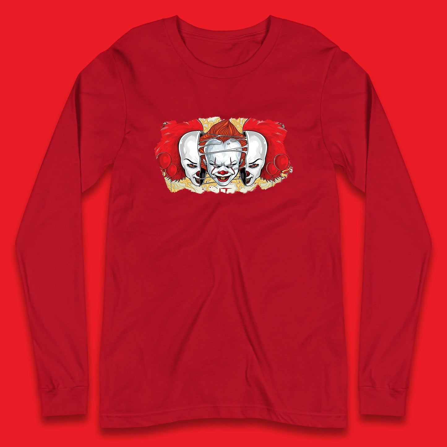 IT Pennywise Clown Halloween Horror Movie Character Evil Clown Costume Serial Killer Long Sleeve T Shirt