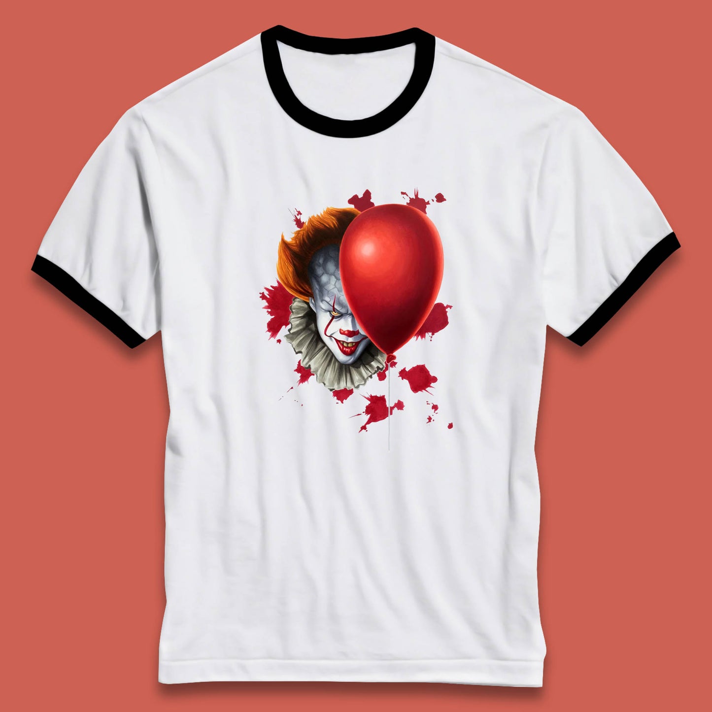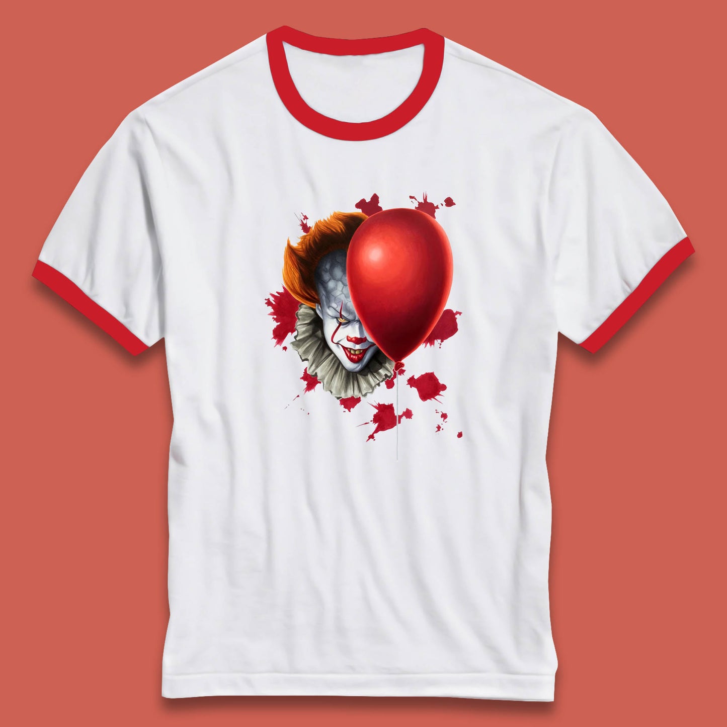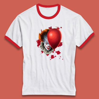IT Pennywise Clown With Balloon Halloween Evil Clown Costume Horror Movie Serial Killer Ringer T Shirt