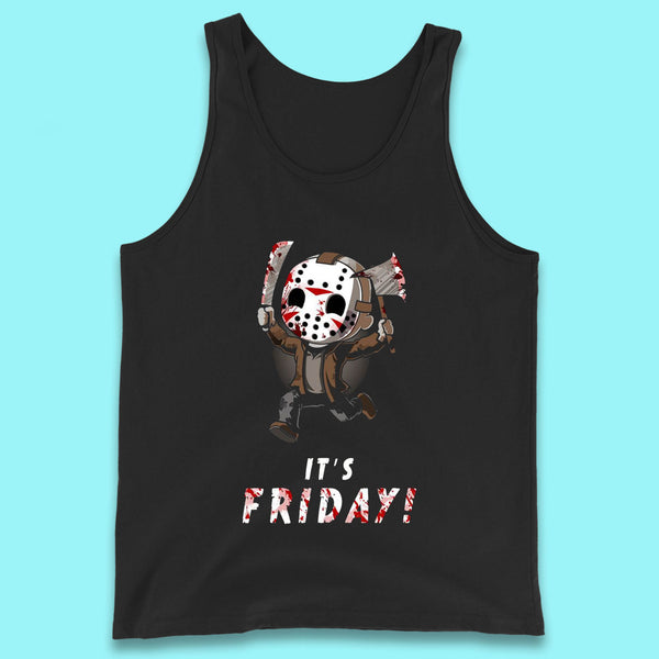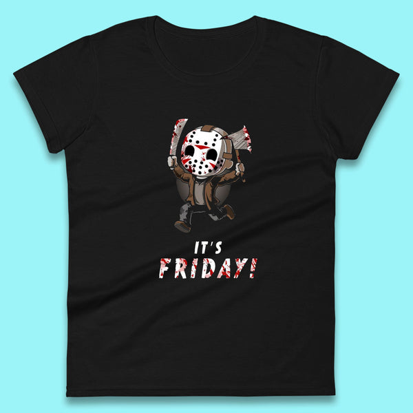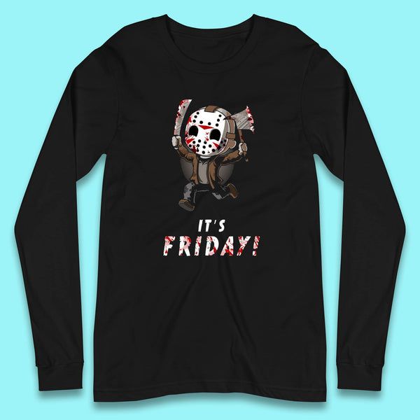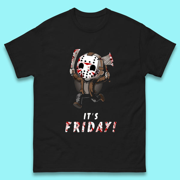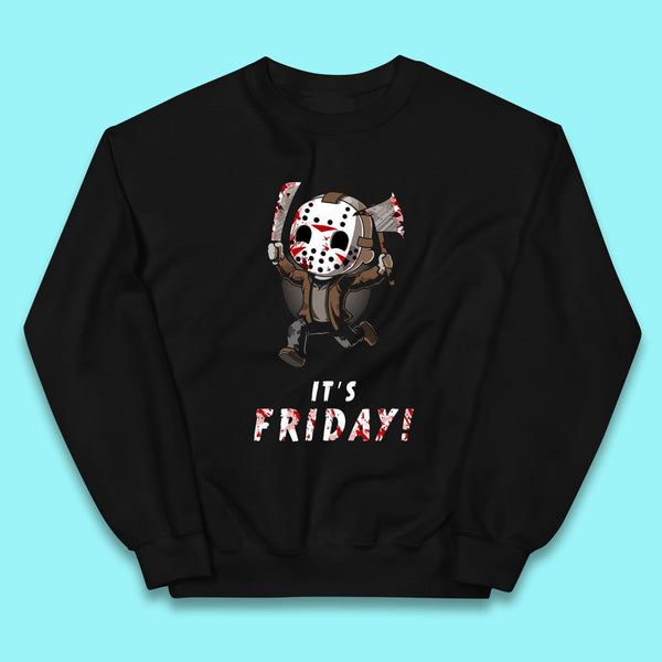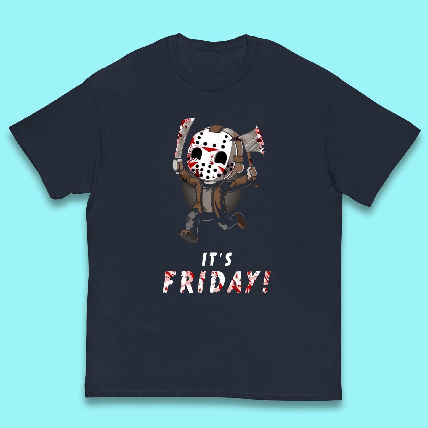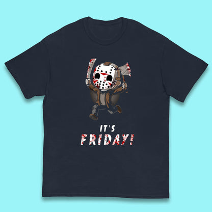 It's Friday Chibi Jason Voorhees Holding Bloody Knife & Bloody Axe Halloween Friday The 13th Horror Movie Kids T Shirt