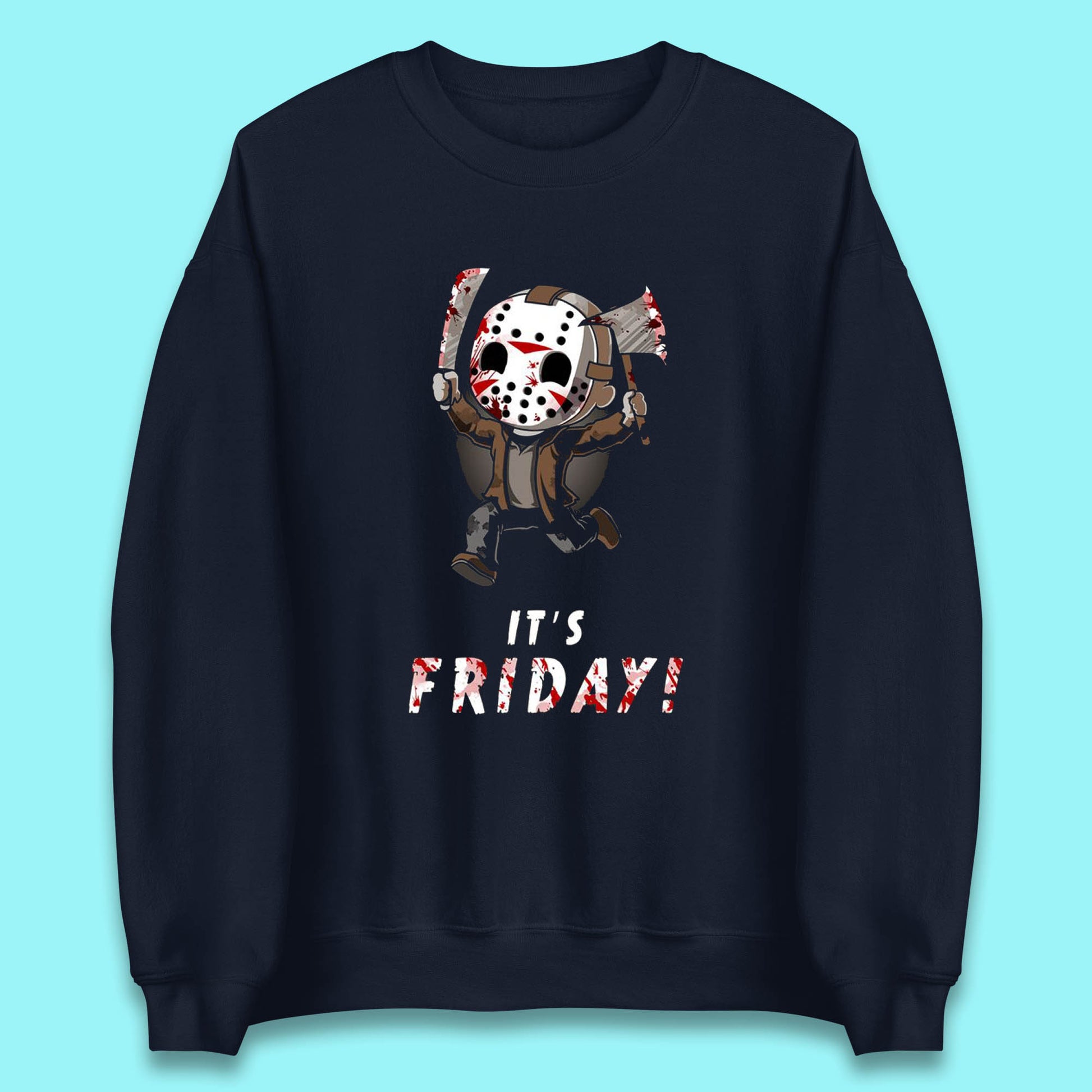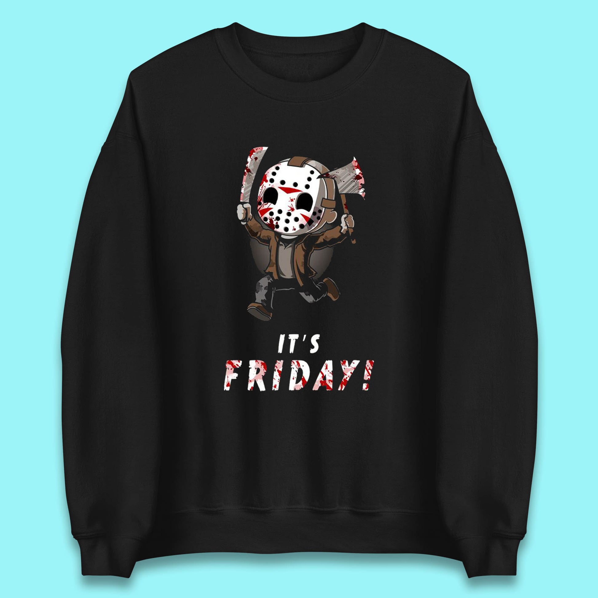 It's Friday Chibi Jason Voorhees Holding Bloody Knife & Bloody Axe Halloween Friday The 13th Horror Movie Unisex Sweatshirt
