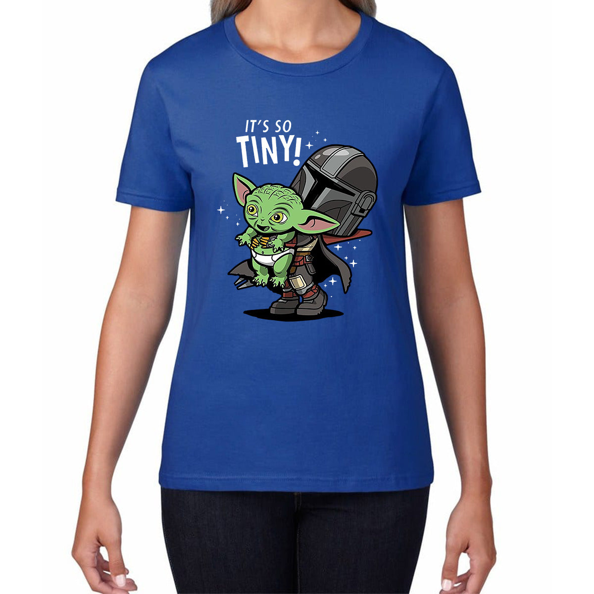 It's So Tiny! The Mandalorian Holding Grogu Yoda's species Star Wars Mando And Baby Yoda Star Wars Day 46th Anniversary Womens Tee Top