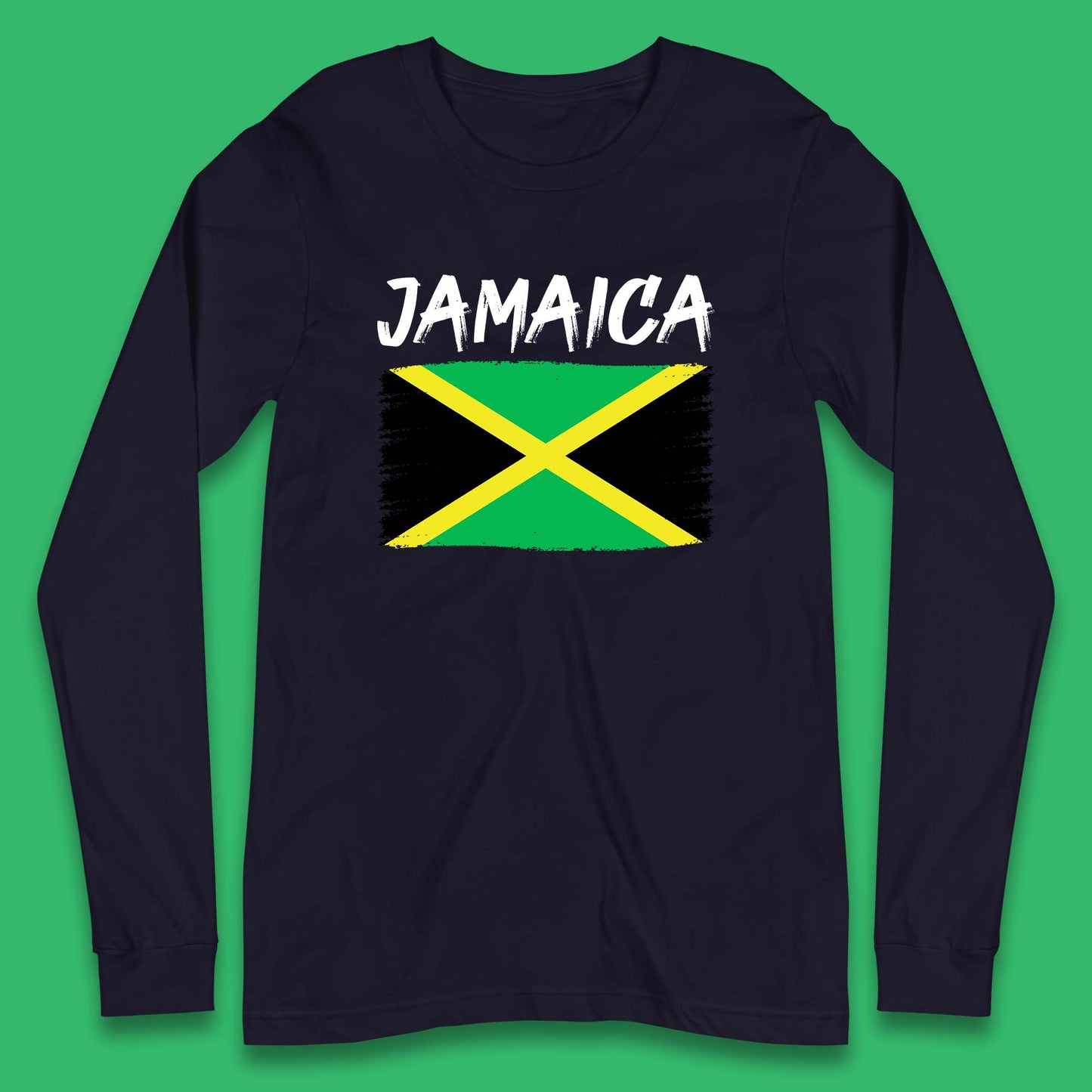 Jamaica Distressed Flag Country In The Caribbean Jamaican Flag Patriotism Long Sleeve T Shirt