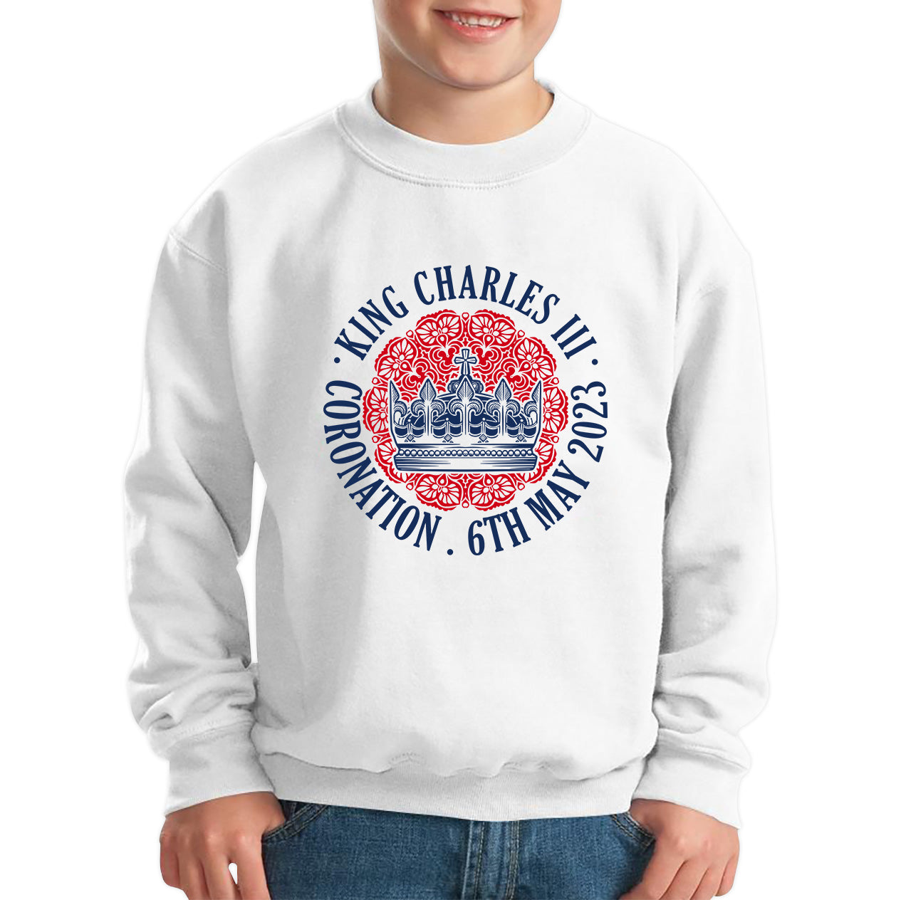 King Charles III Coronation 6th May 2023 Royal Crown CR III Ruling Monarch Of England United Kingdom Kids Jumper