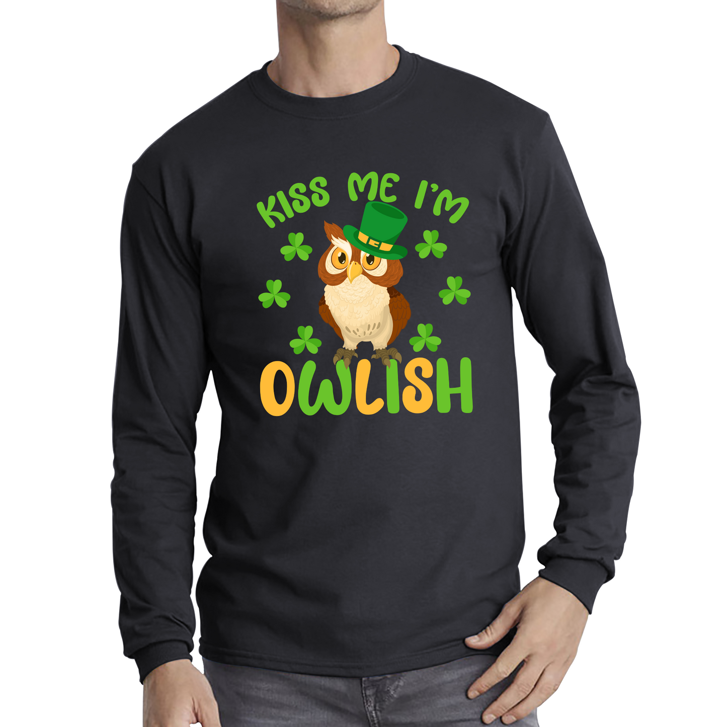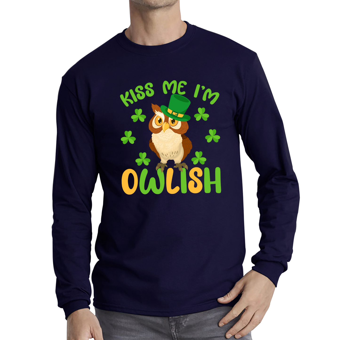 Kiss Me I'm Owlish St. Patrick's Day Long Sleeve T Shirt