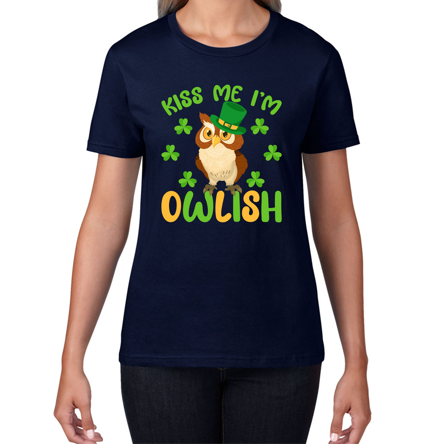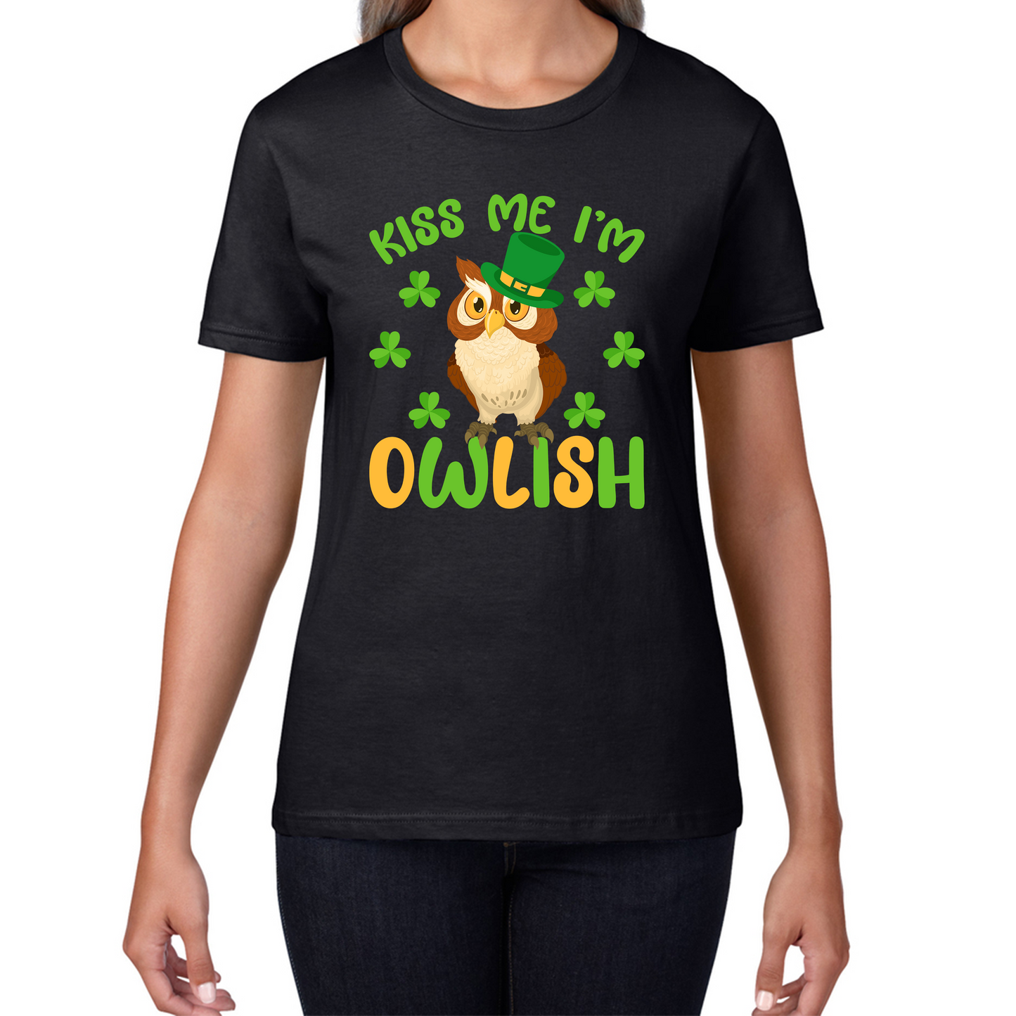 Kiss Me I'm Owlish St. Patrick's Day Ladies T-Shirt