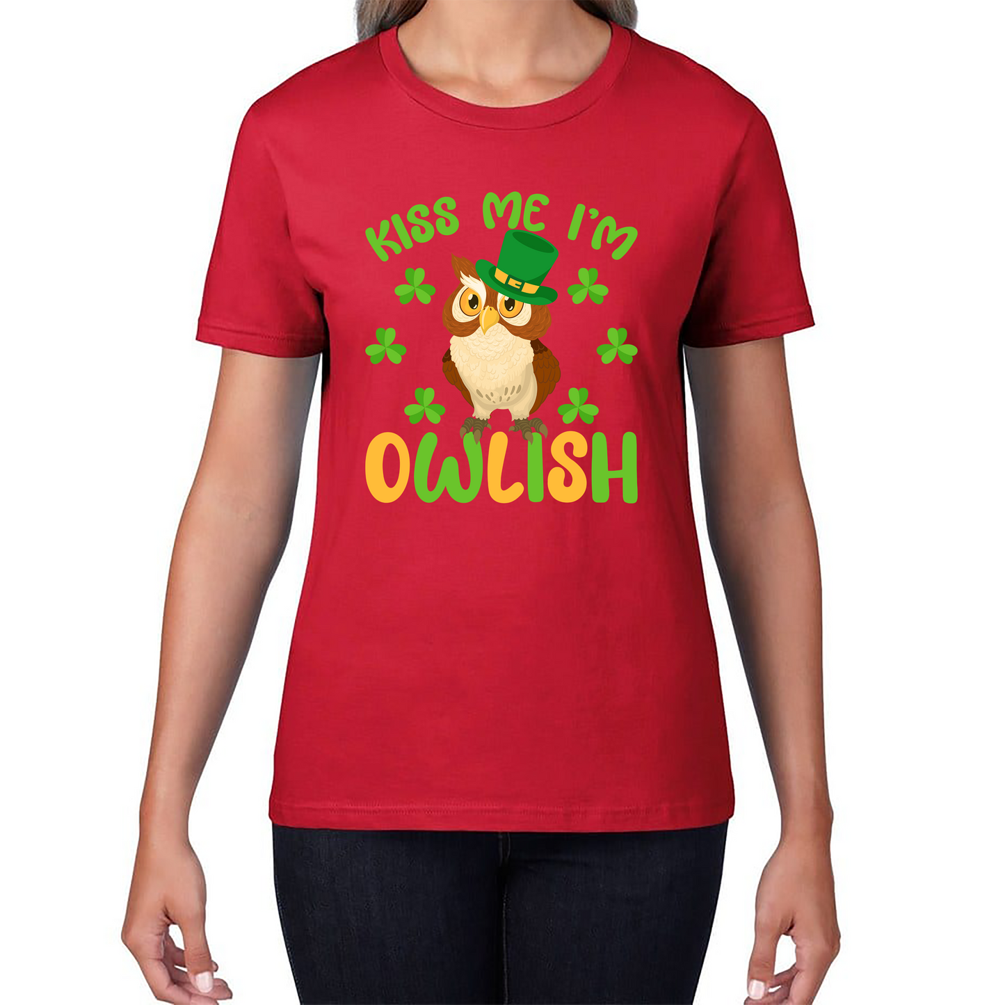 Celebrate St. Patrick's Day with a blend of charm and whimsy in the "Kiss Me I'm Owlish" Ladies T-Shirt. Featuring an adorable owl graphic and a playful slogan, this t-shirt is the perfect way to add a touch of festive fun to your holiday wardrobe.